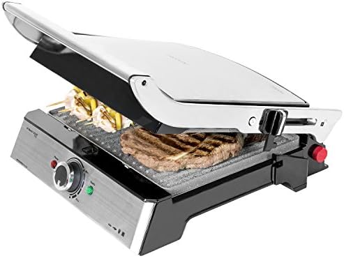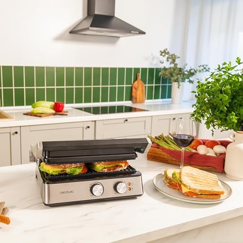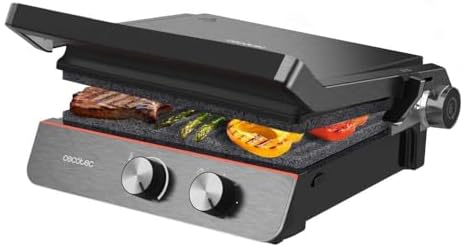 Cecotec Grill électrique Rock’nGrill Smart. Système de réglage de la puissance, du temps et de la température de 2000 W, ouverture à 180 °, plaques amovibles allant au lave vaisselle : Cuisine et Maison