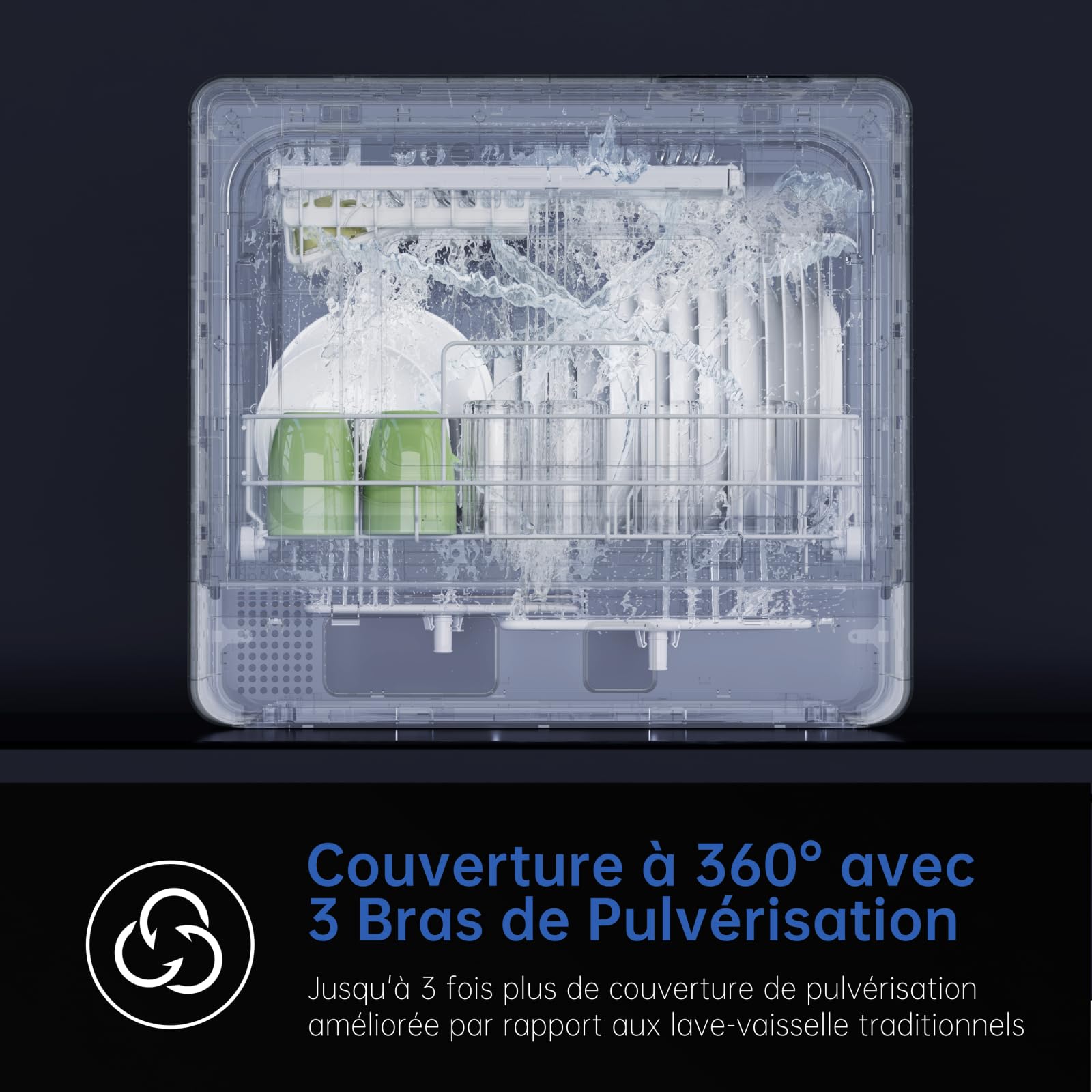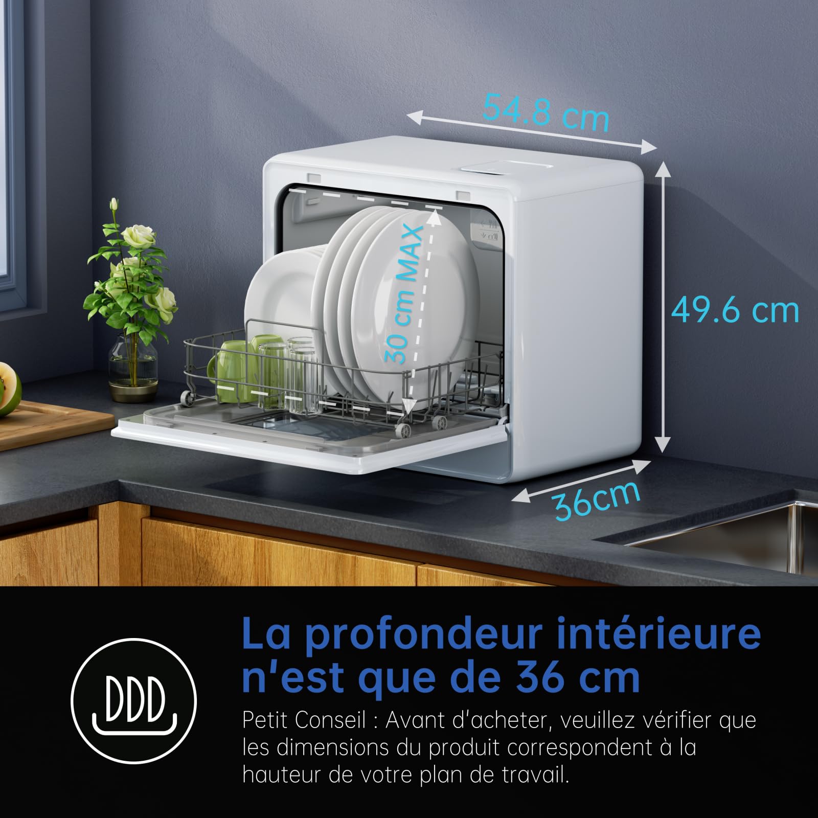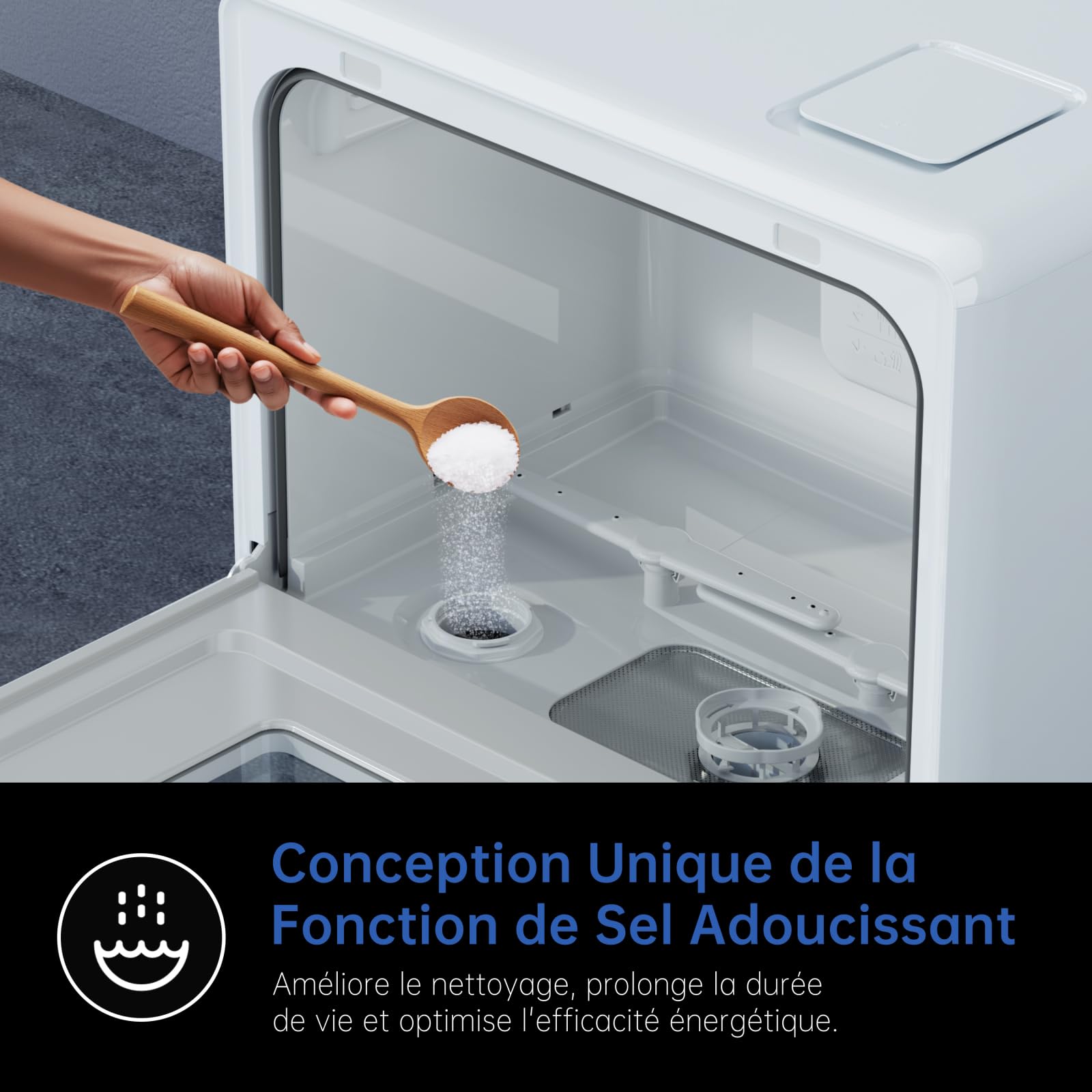 AIRMSEN Lave-vaisselle de Table Mini Lave-vaisselle avec 7+2 Programmes, Fonction Sel Adoucissant Commande Tactile Affichage à LED Réservoir d'Eau 5L,