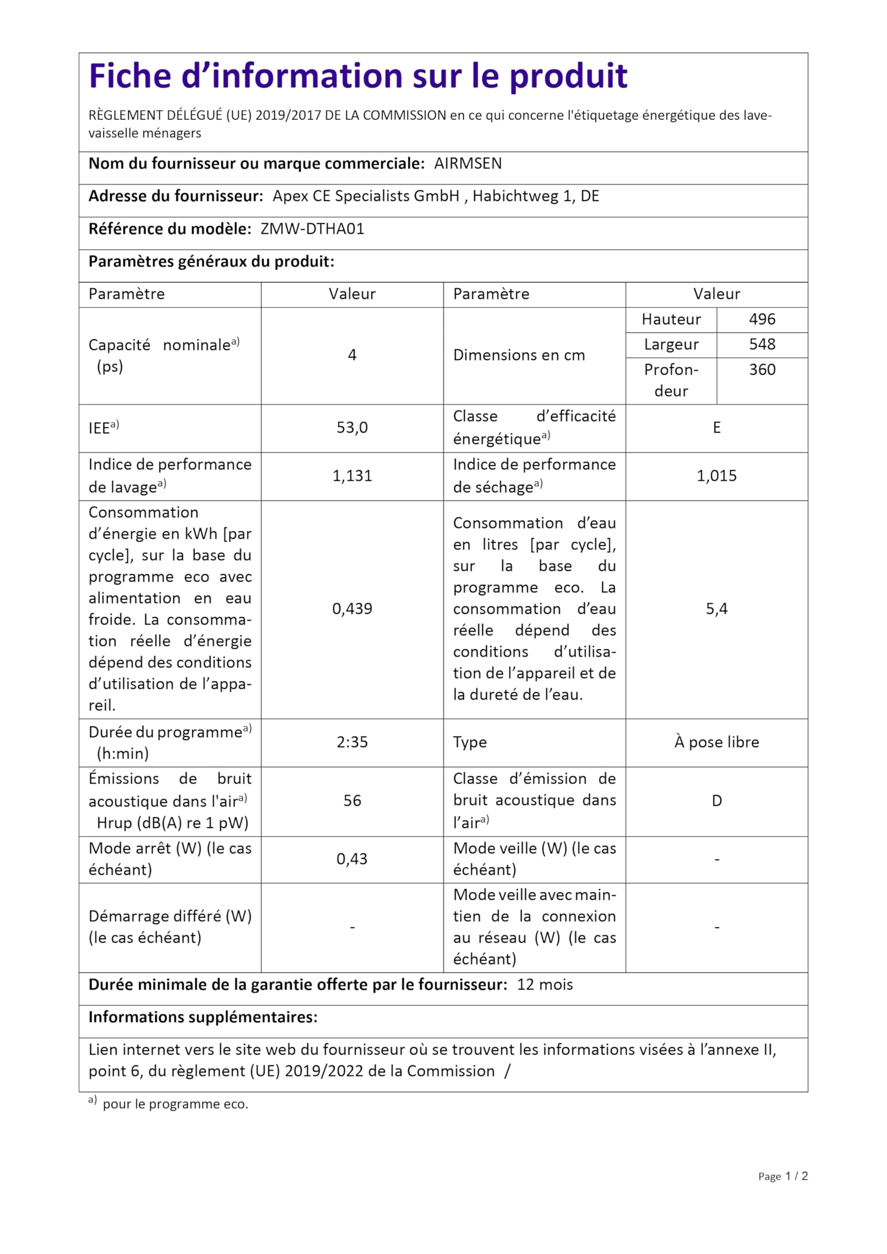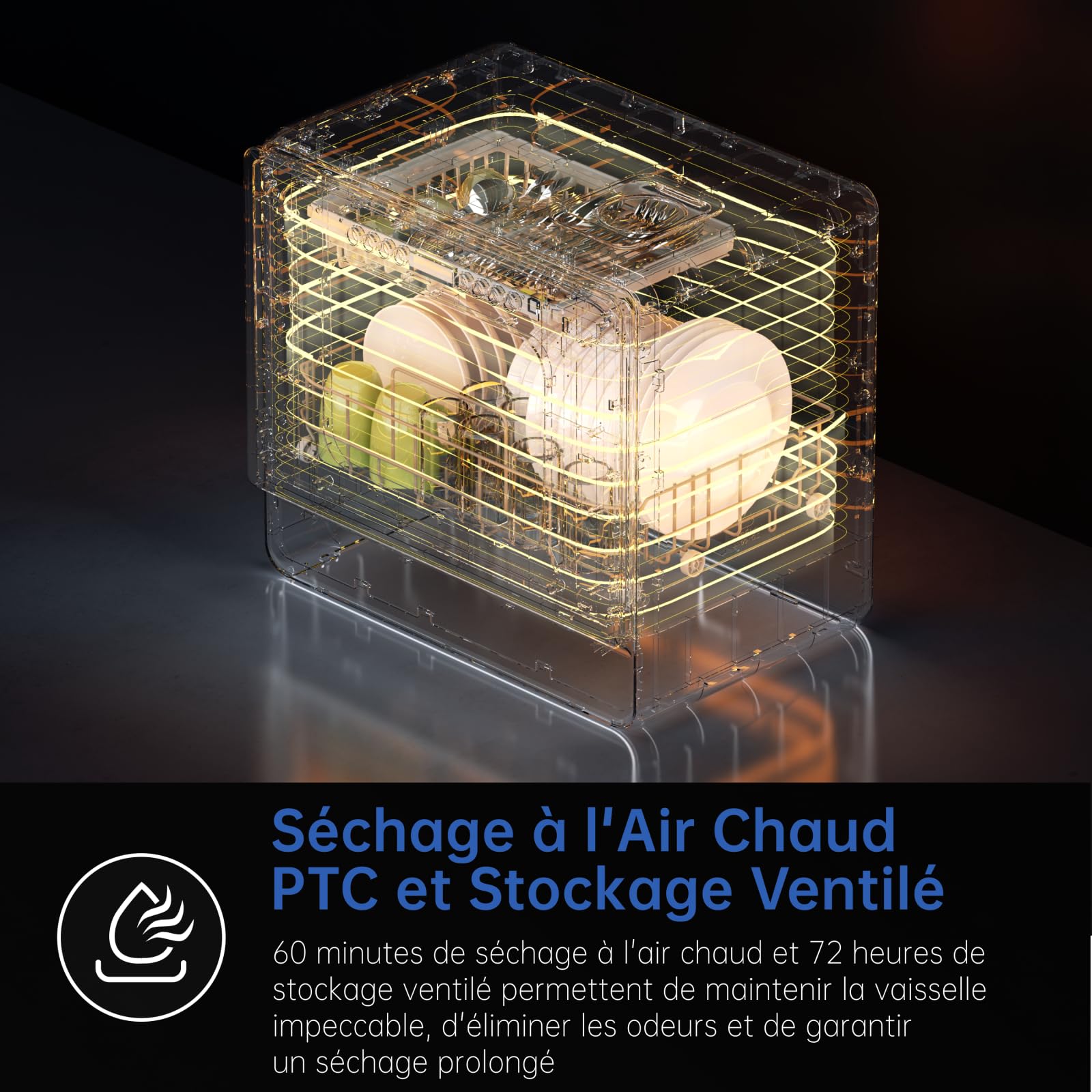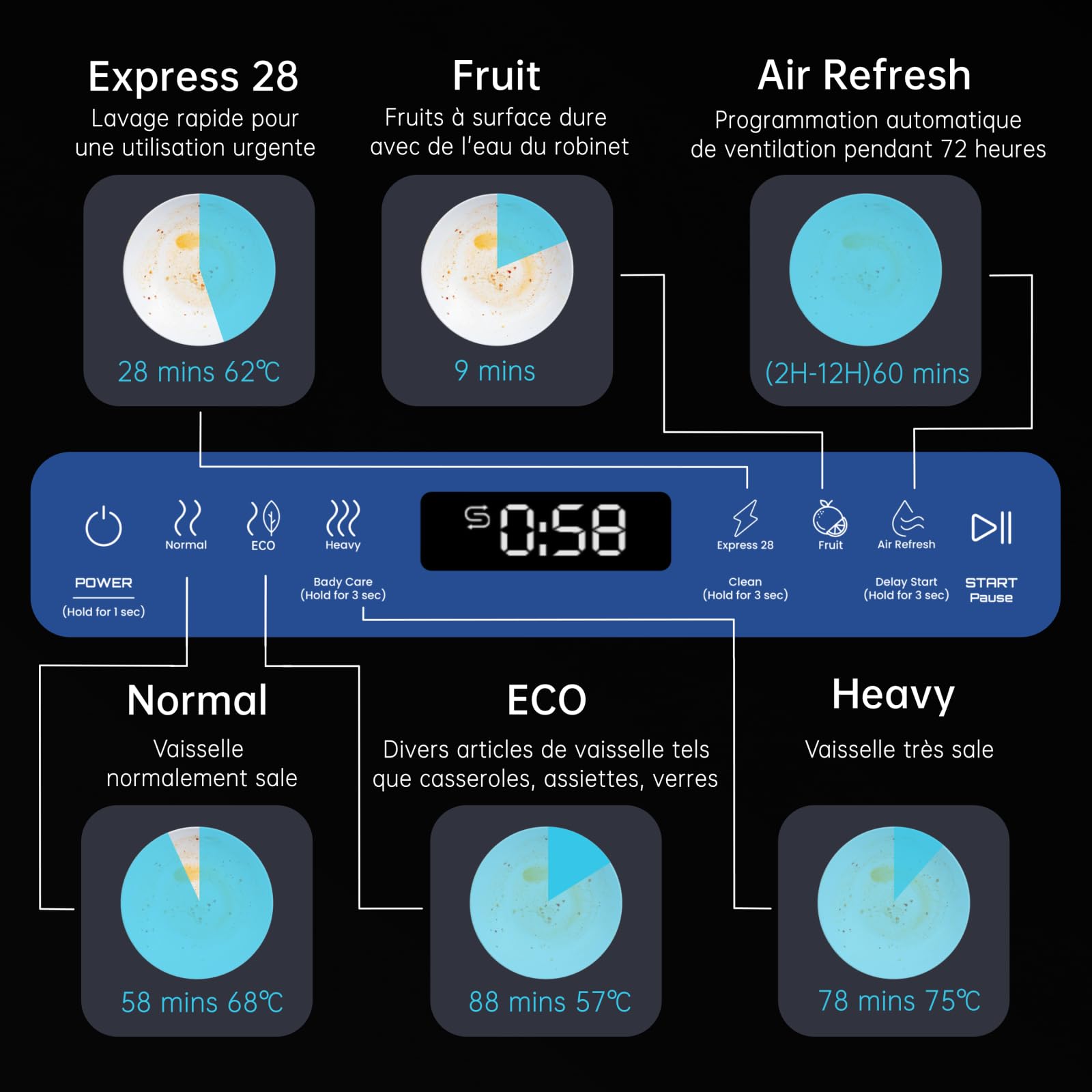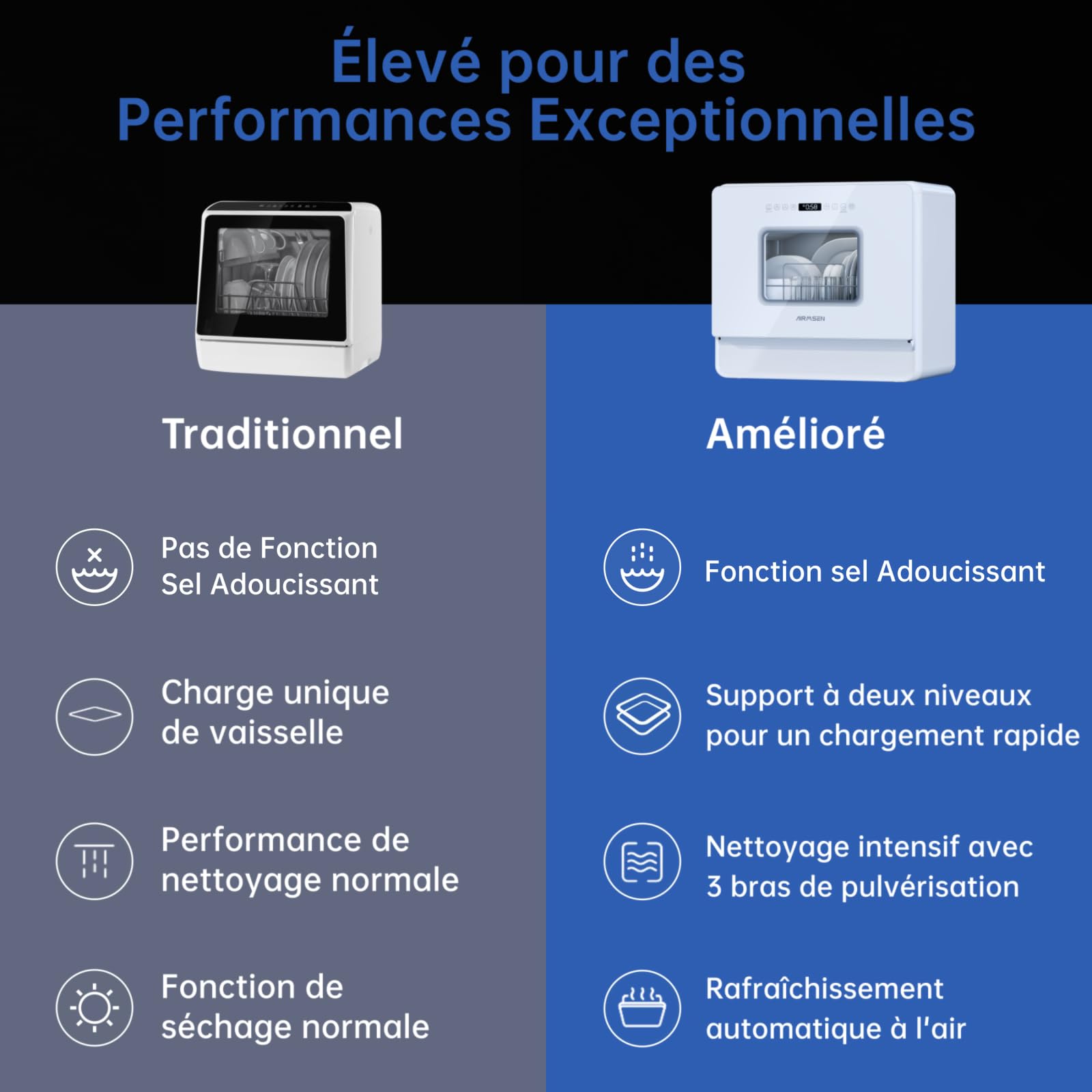 AIRMSEN Lave-vaisselle de Table Mini Lave-vaisselle avec 7+2 Programmes, Fonction Sel Adoucissant Commande Tactile Affichage à LED Réservoir d'Eau 5L,