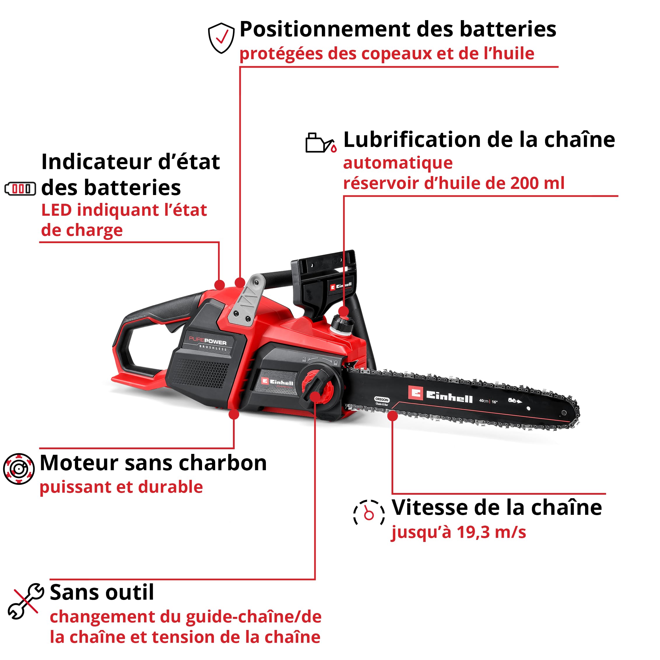 Einhell Professional Tronçonneuse sans fil GP-LC 36/40 Li BL-Solo (36 V, longueur de coupe 38 cm, moteur sans charbon, vitesse de chaîne de 19 m/s, lu