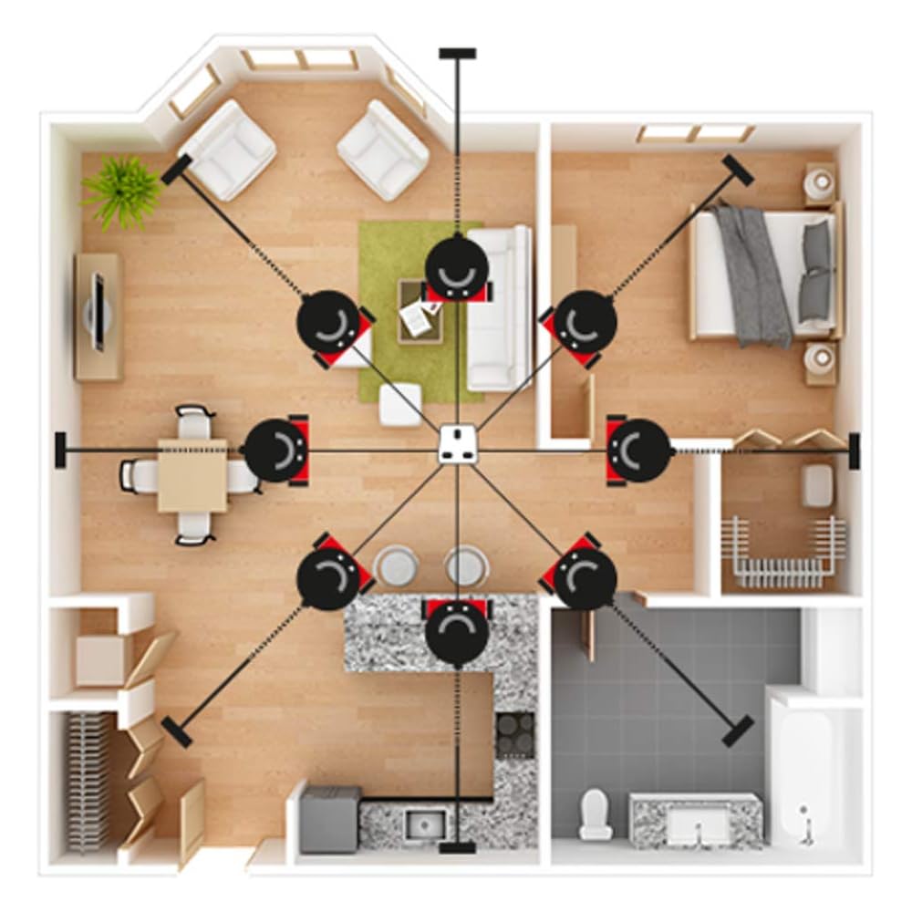 Lit mezzanine avec bureau et espace détente — Blanc moderne — Solution complète pour chambre