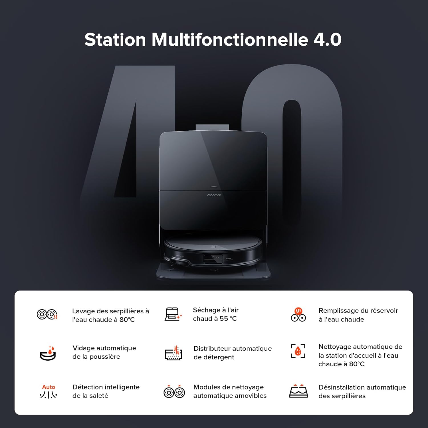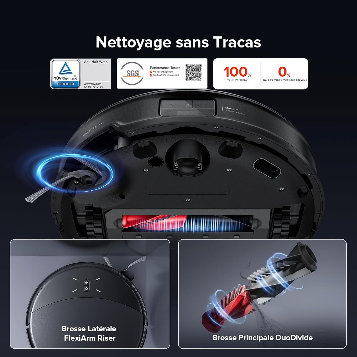 roborock Saros 10R Robot Aspirateur, Brosse et Serpillère Relevables et Extensibles, Triple Système Anti-Enchevêtrement, Station Multifonctionnelle 4.0, Évitement Avancé des Obstacles, 7,98cm Mince