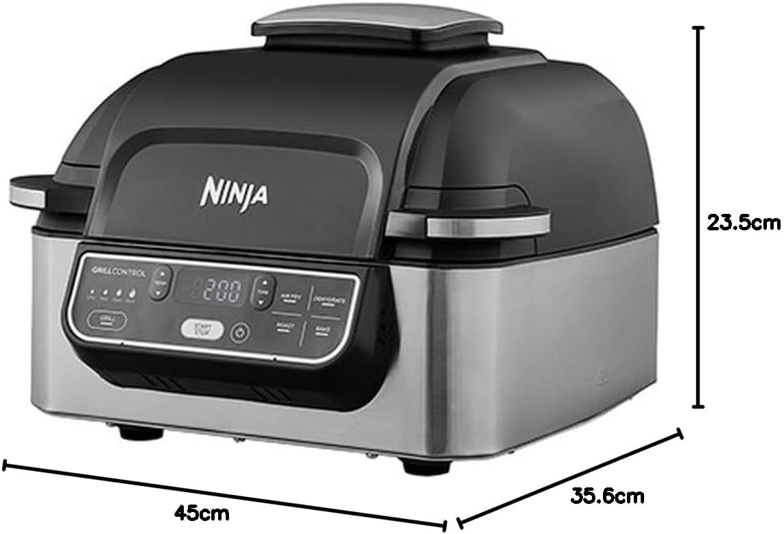 Ninja Foodi Grill & Air Fryer, 5,7L, 5 Fonctions de Cuisson Air Fry, Grille, Cuit, Rotis et bien plus, Pièces Lavables au Lave-vaisselle, Noir/Argent