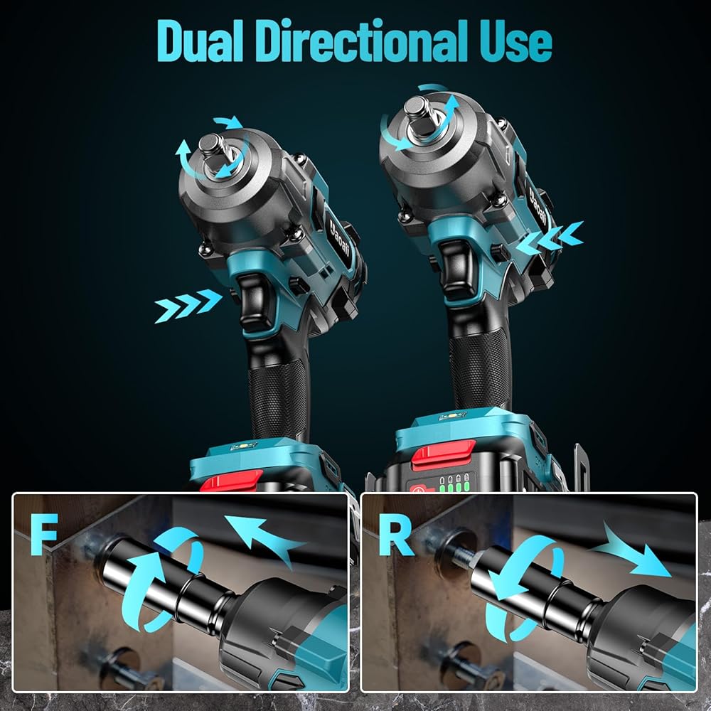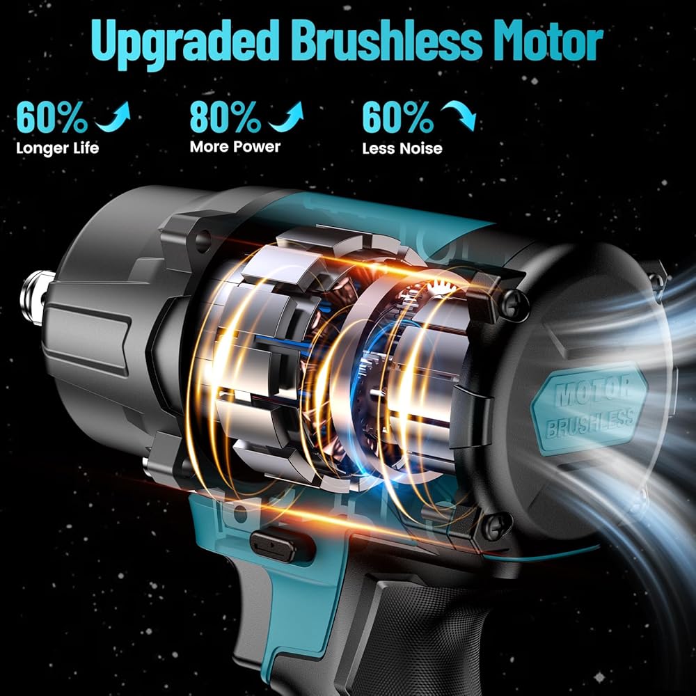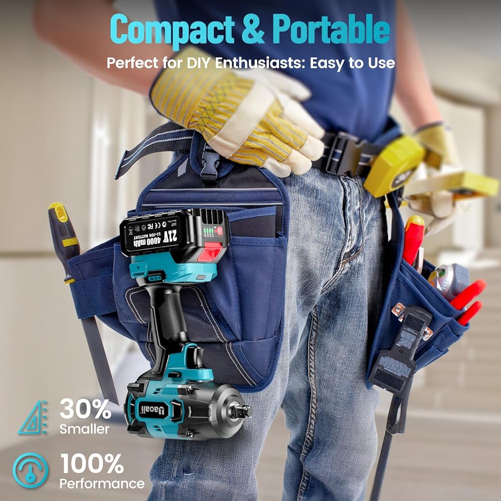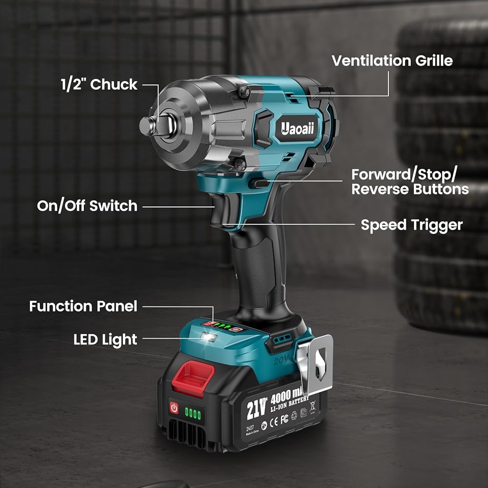 Uaoaii Clé à Chocs sans fil Brushless 1000 Nm Boulonneuse à Choc Électrique Batterie 4000mAh Adaptateur Visseuse à Chocs 5 Douilles incluses Puissance et Facilité pour Boulonner et Déboulonner : Bricolage