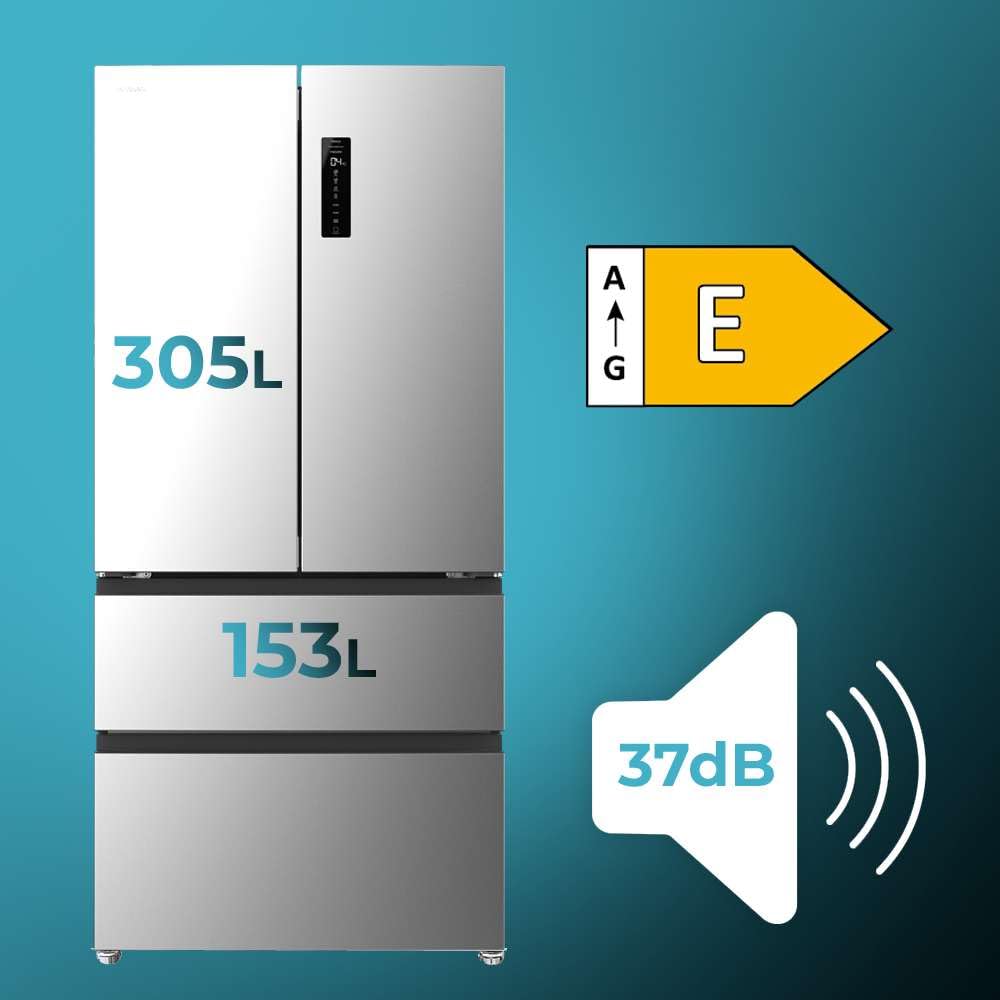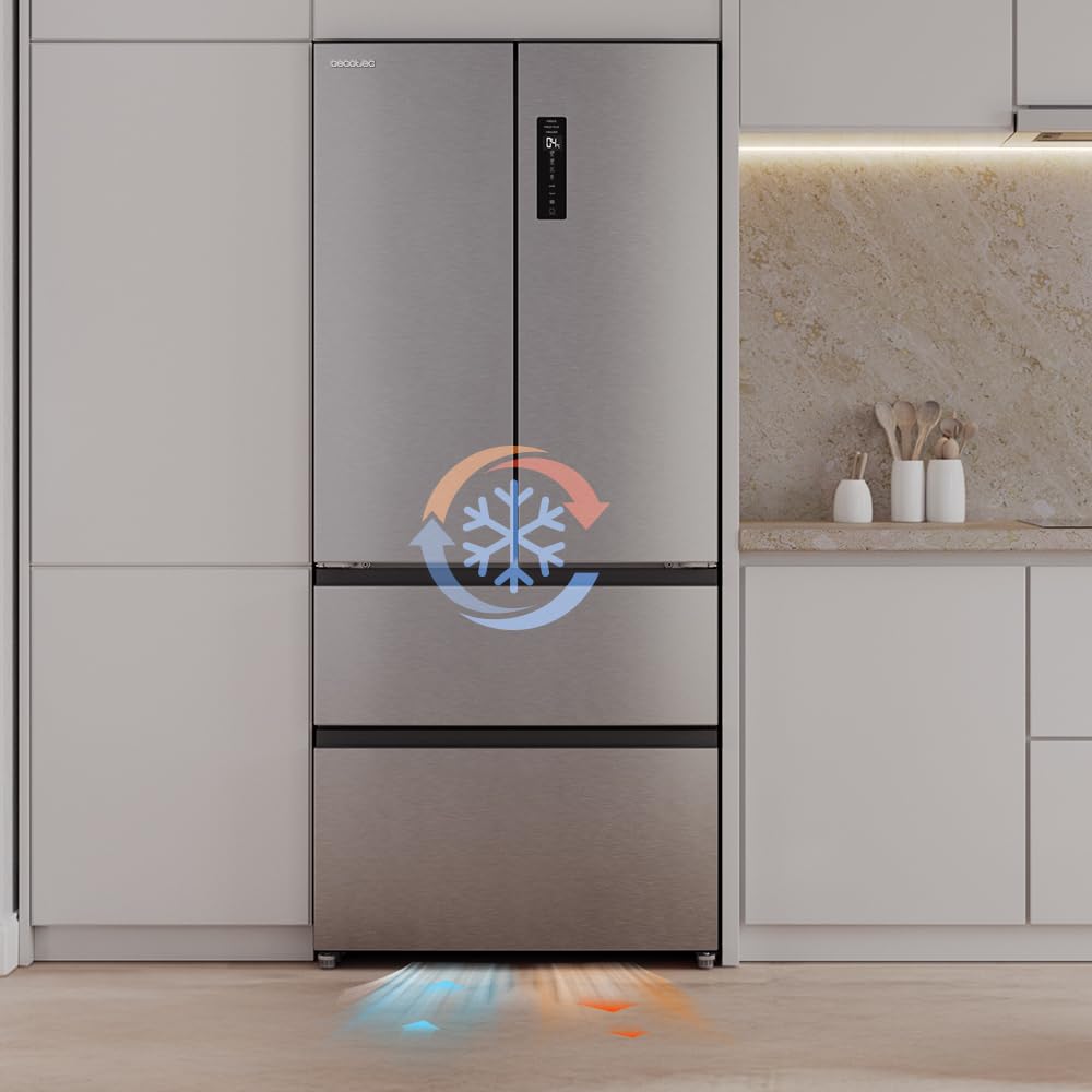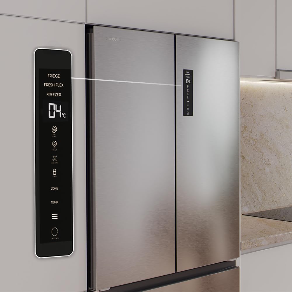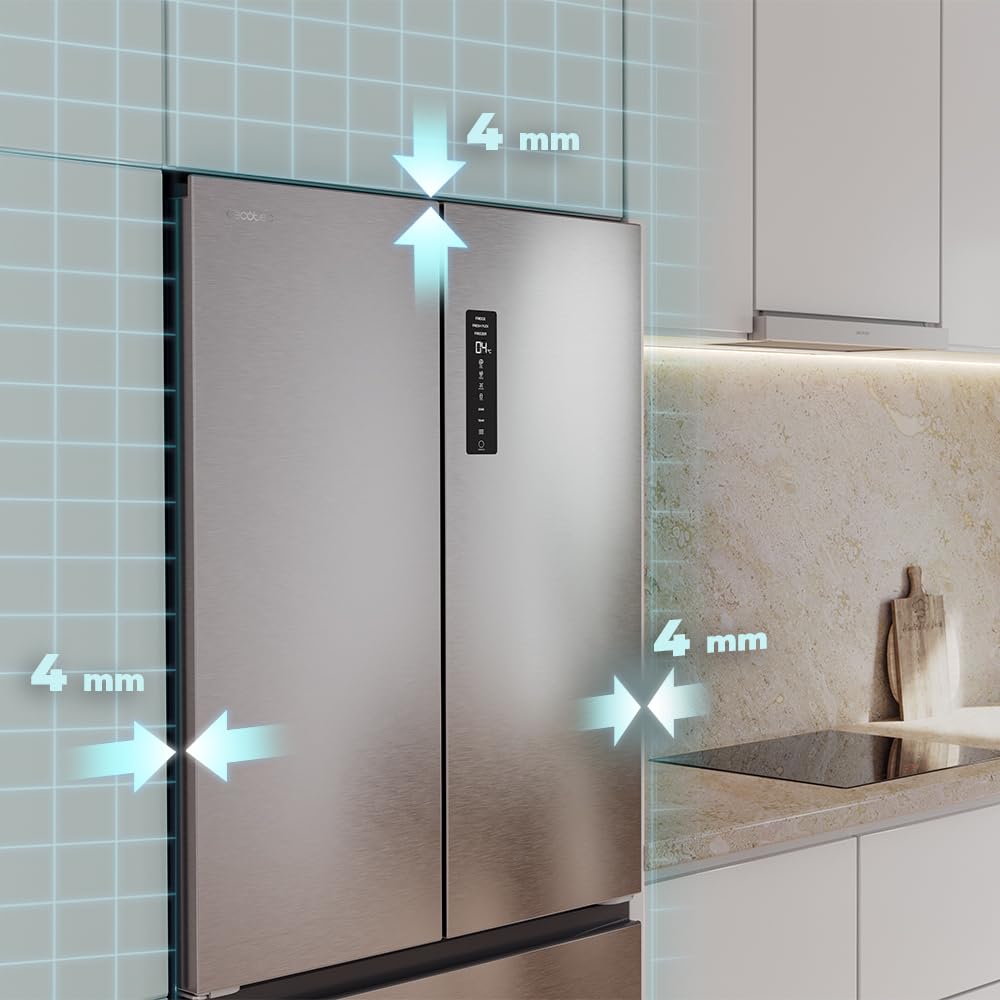 Cecotec Réfrigérateur Porte Française de 4 Portes Semi-Intégrable 458L Total No Frost Bolero CoolMarket F2D 458 SBI Inox E, Hauteur 189 cm et 83 cm La