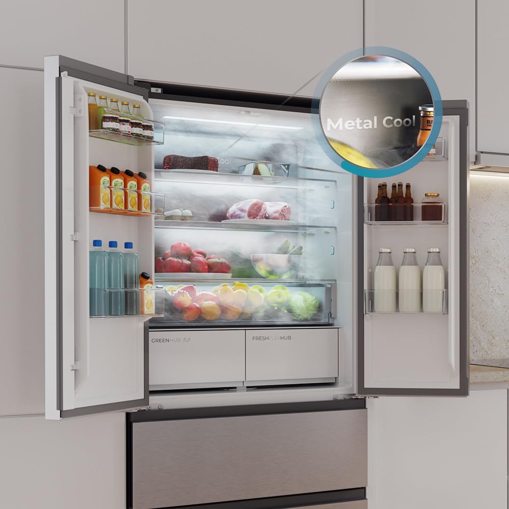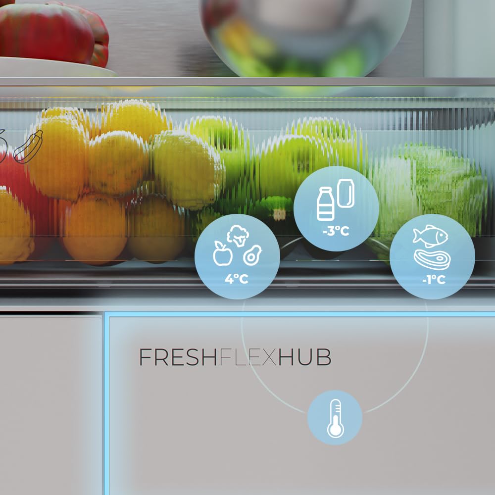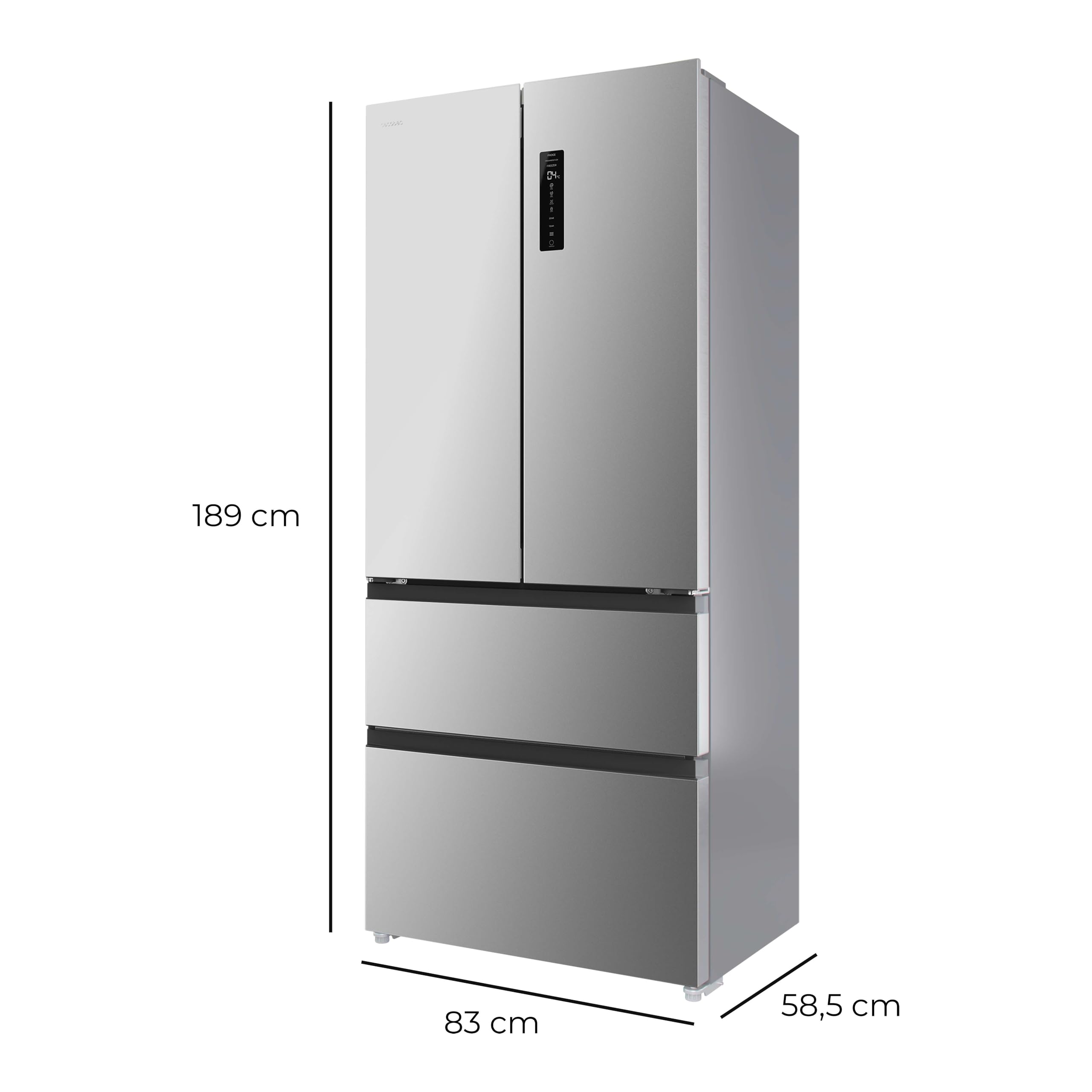 Cecotec Réfrigérateur Porte Française de 4 Portes Semi-Intégrable 458L Total No Frost Bolero CoolMarket F2D 458 SBI Inox E, Hauteur 189 cm et 83 cm La