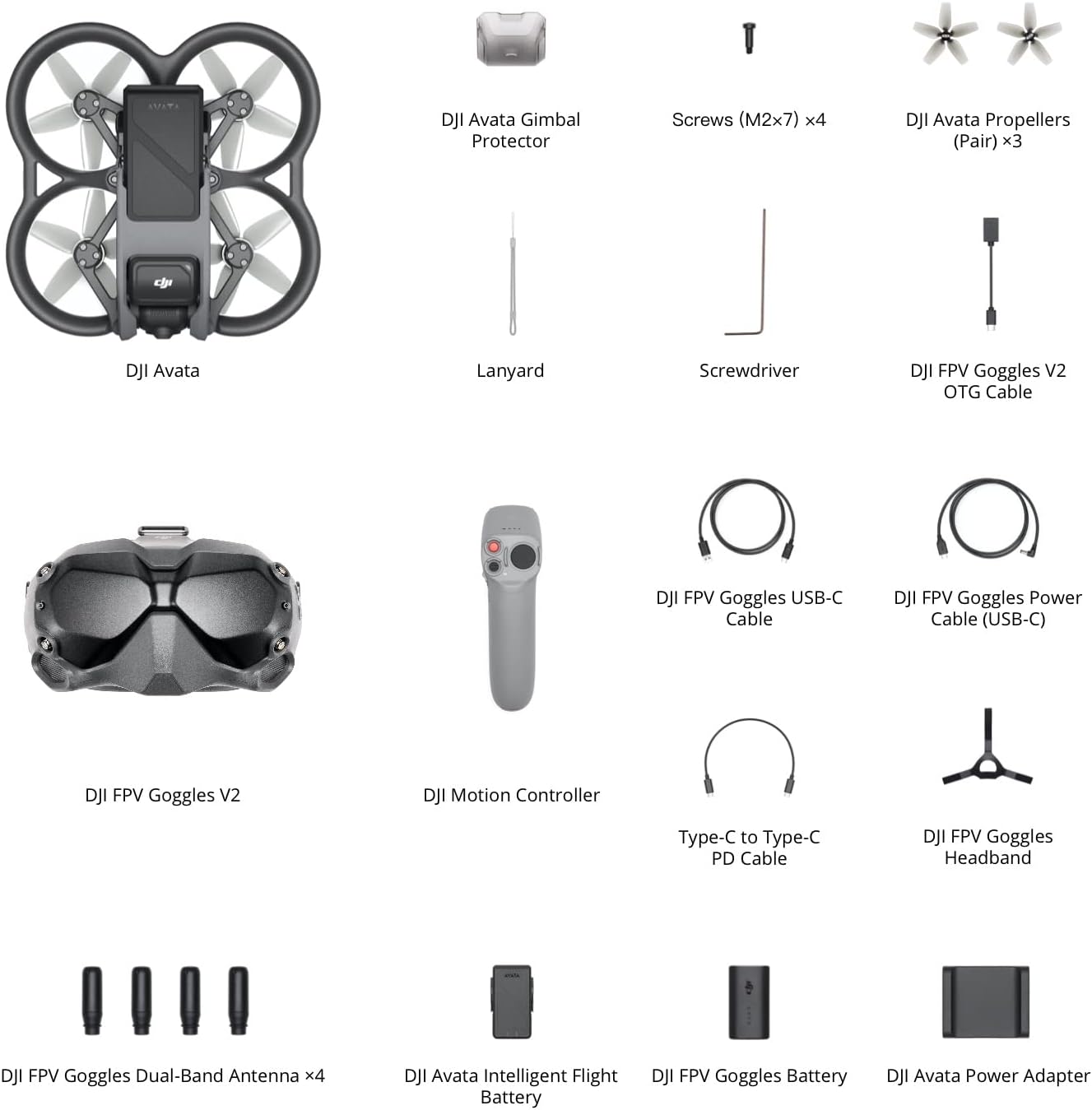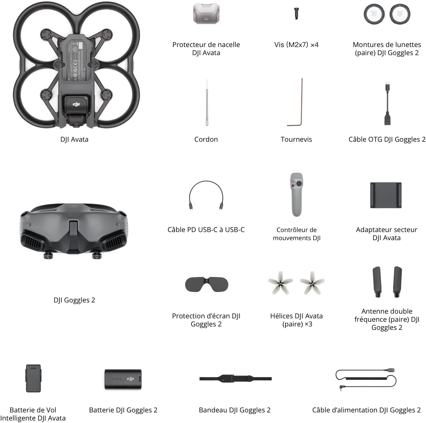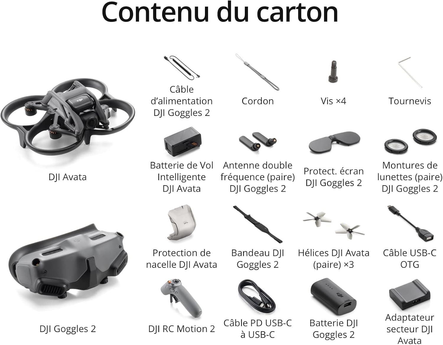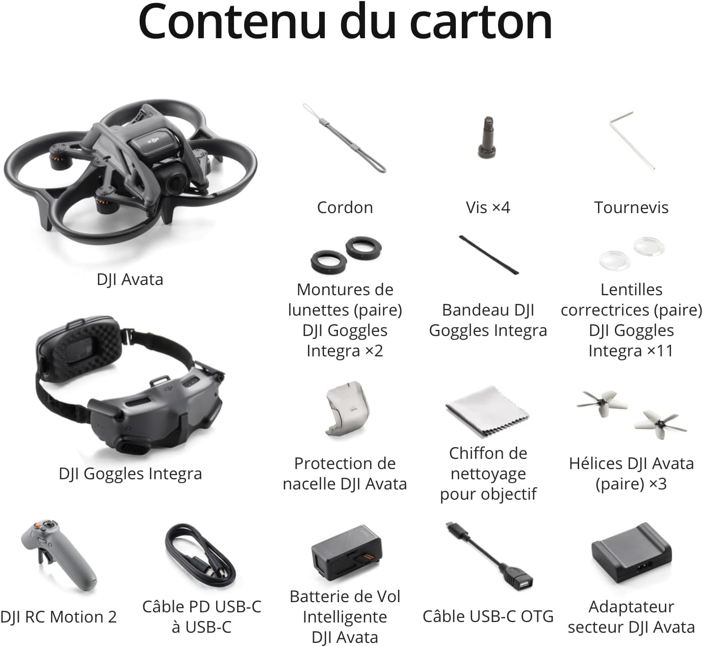 DJI Avata - Drone UAV quadricoptère, vue subjective, vidéo stabilisée 4K, FOV 155°, protection d’hélice, transmission HD faible latence, freinage d’urgence, vol stationnaire, noir