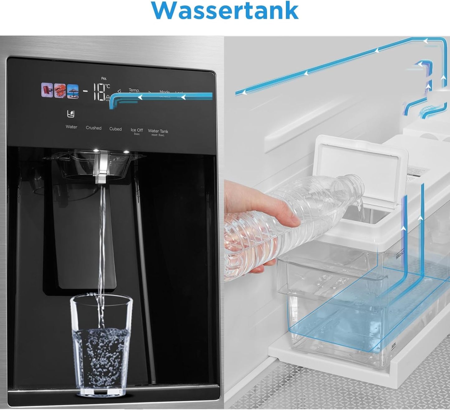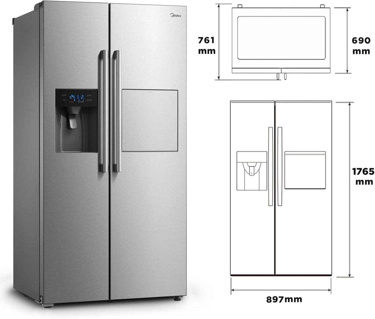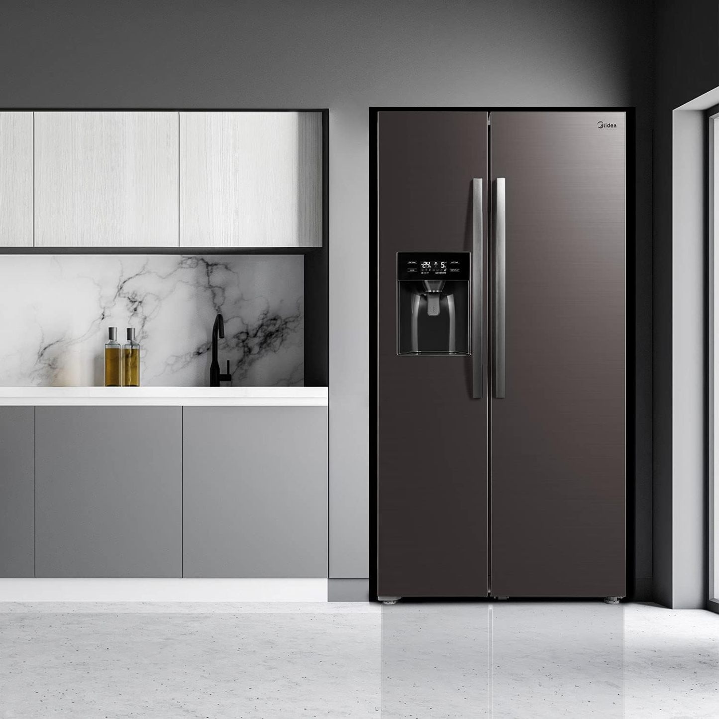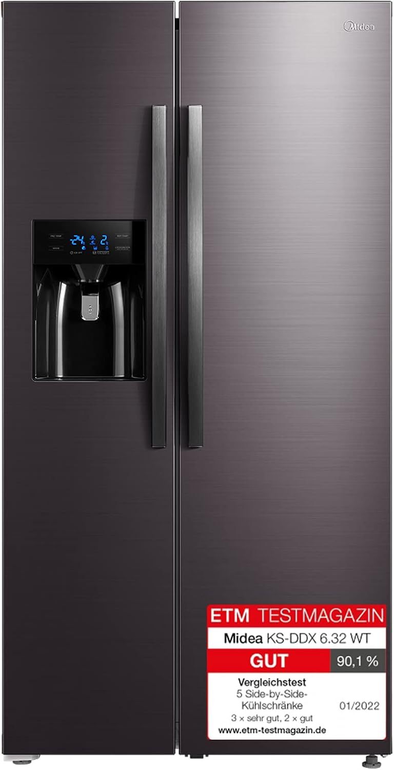 Midea KS-DDX 6.32 WT Side-by-Side Kühl-/Gefrierkombination/ 178,8 cm Hhe/ 254 kWh/Jahr/No Frost/Dual Inverter Compressor/mit 3in1 Wasser-/Eisspender und Wassertank, Dark Inox