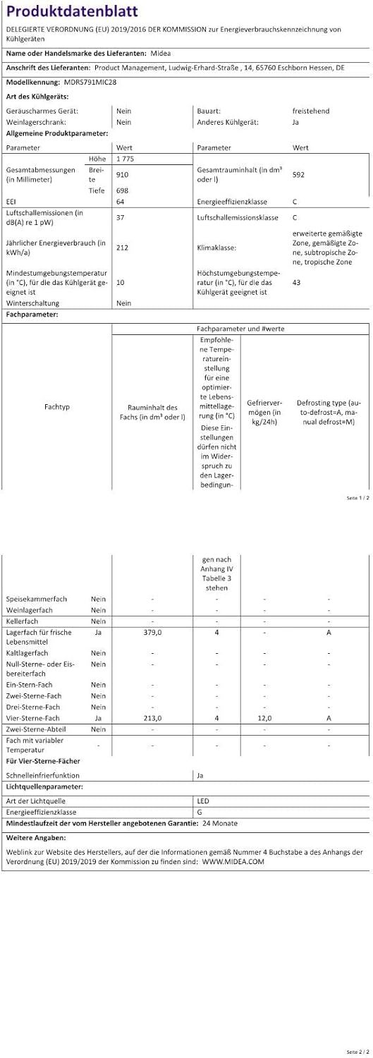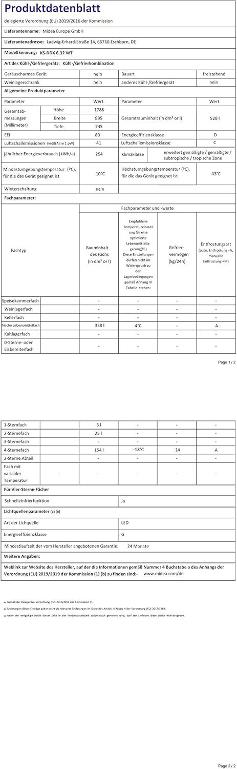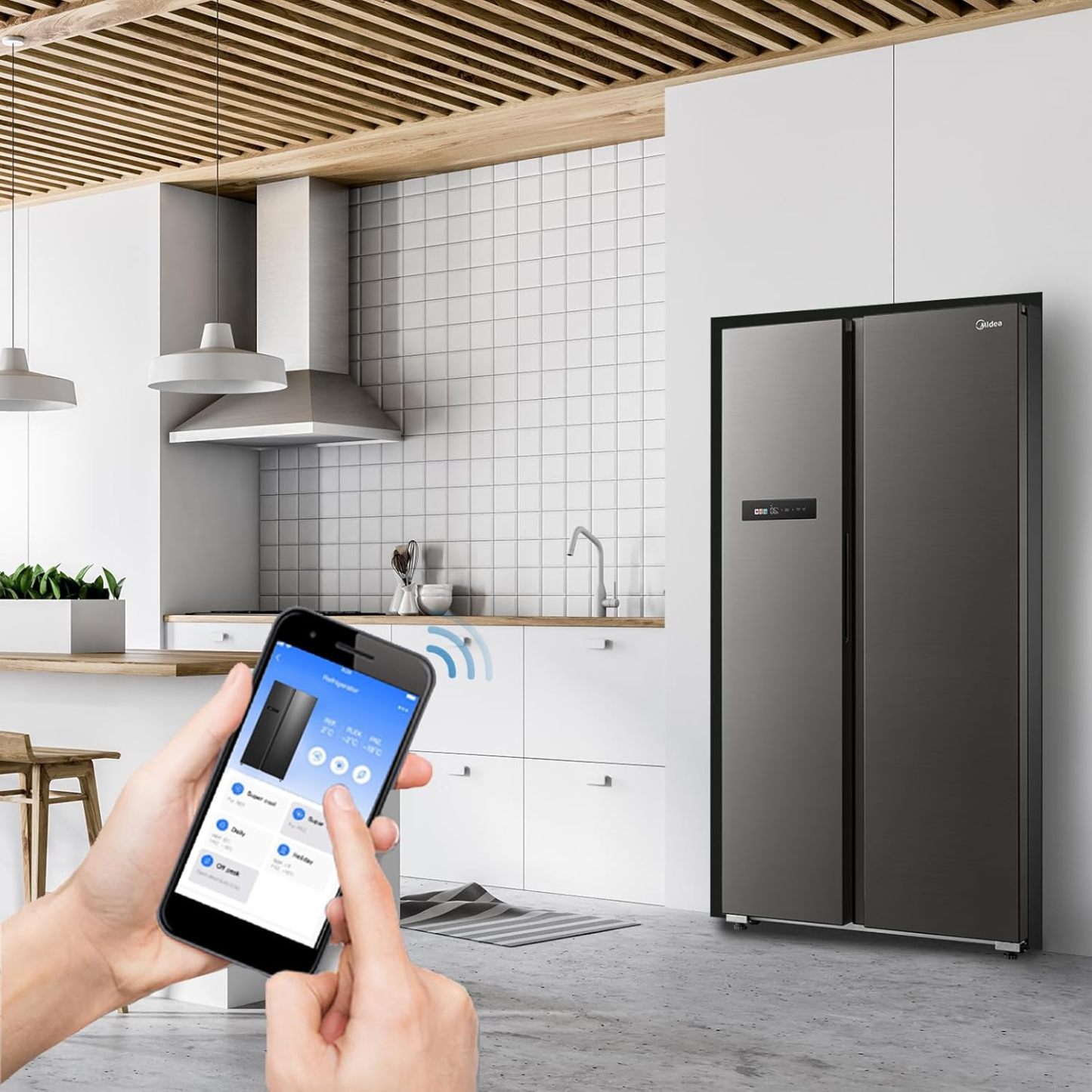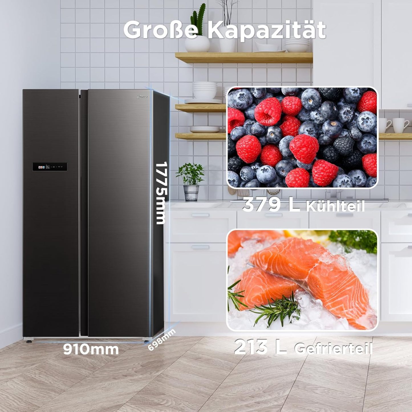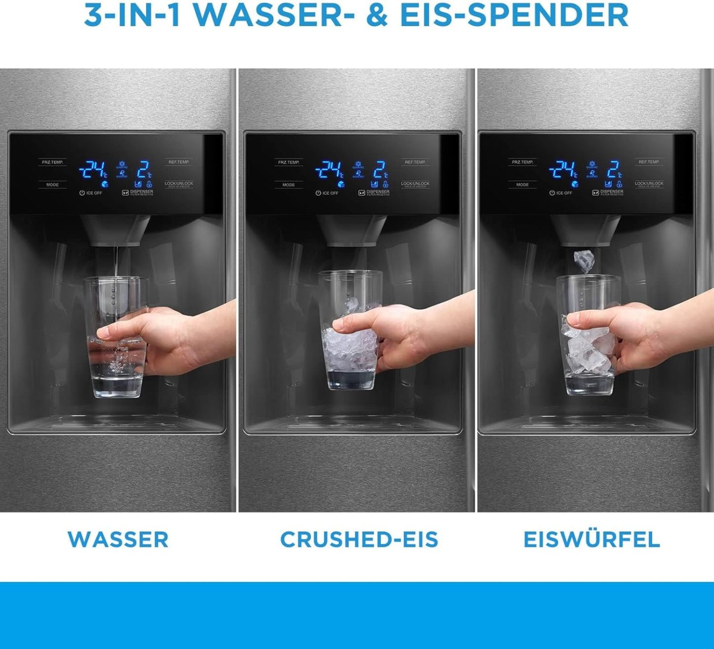 Midea KS-DDX 6.32 WT Side-by-Side Kühl-/Gefrierkombination/ 178,8 cm Hhe/ 254 kWh/Jahr/No Frost/Dual Inverter Compressor/mit 3in1 Wasser-/Eisspender und Wassertank, Dark Inox