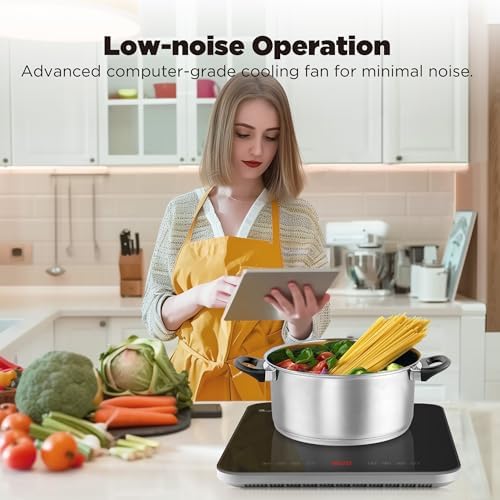 Plaque Induction Portable, Plaque Induction 1 Feu, 23 mm Ultra fin, Deux ventilateurs, Chauffage homogène, 10 Niveaux de puissance, Minuterie, Sécurité enfant 2100W : Gros électroménager