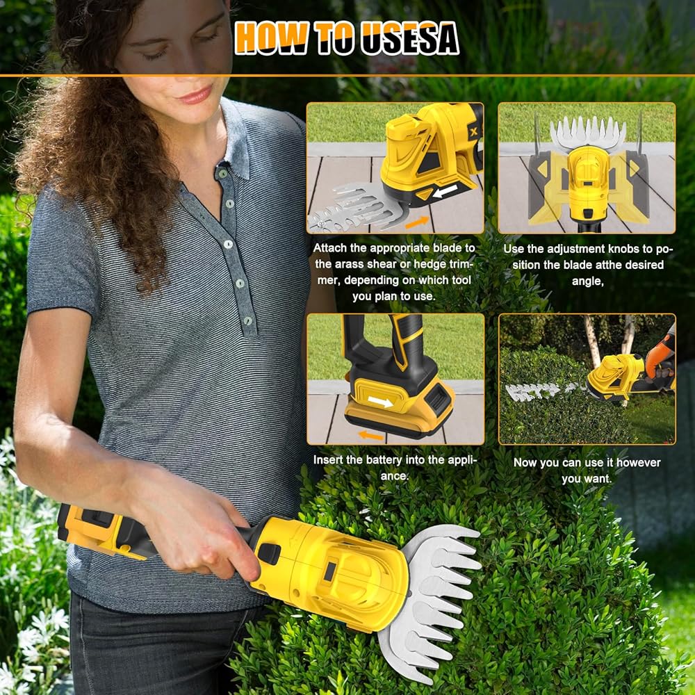 Taille-haie et cisaille à Gazon sans Fil 2 en 1, Cisaille à Gazon et Arbustes Compatible avec Dewalt 20V Batterie, Cisaille haie avec 2 Lames pour Tailler Les arbustes et l'herbe (sans Batterie) : Jardin