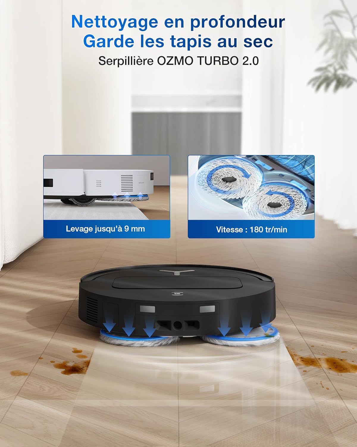 ECOVACS T50 Omni Aspirateur Robot avec Station, Puissance 15000Pa amélioré par T30 Pro Omni, Brosse latérale et serpillière Extensibles, ZeroTangle 2.0, AIVI 3D 2.0, Lavage à l'eau Chaude 75℃, Blanc