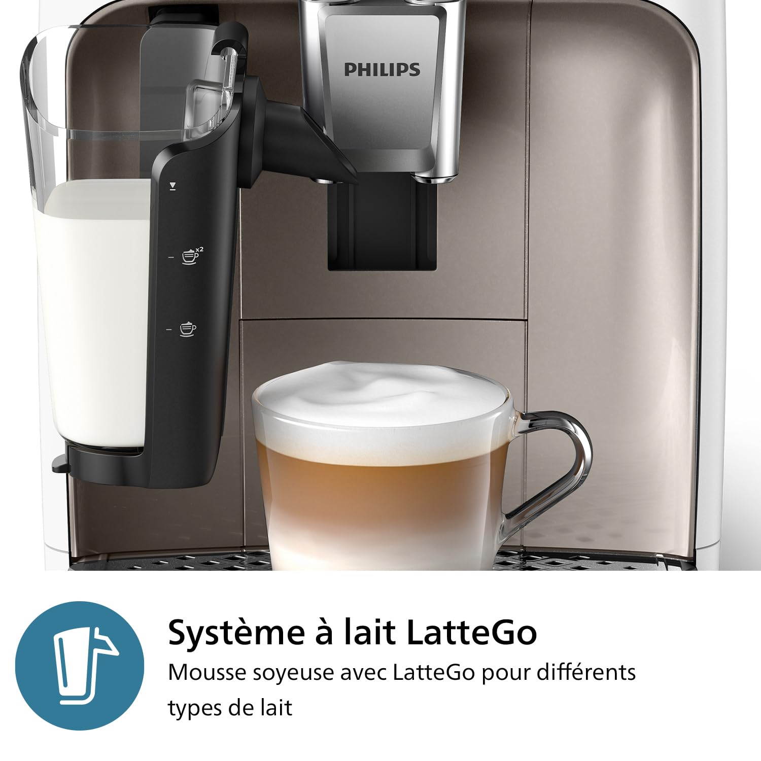Philips Machine à Expresso Automatique Série 2300-4 Boissons, Écran tactile couleur moderne, Système de lait LatteGo, SilentBrew, Broyeur en Céramique