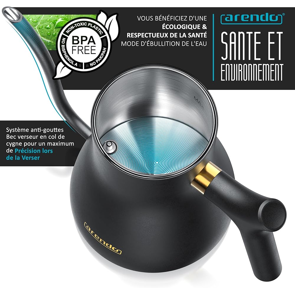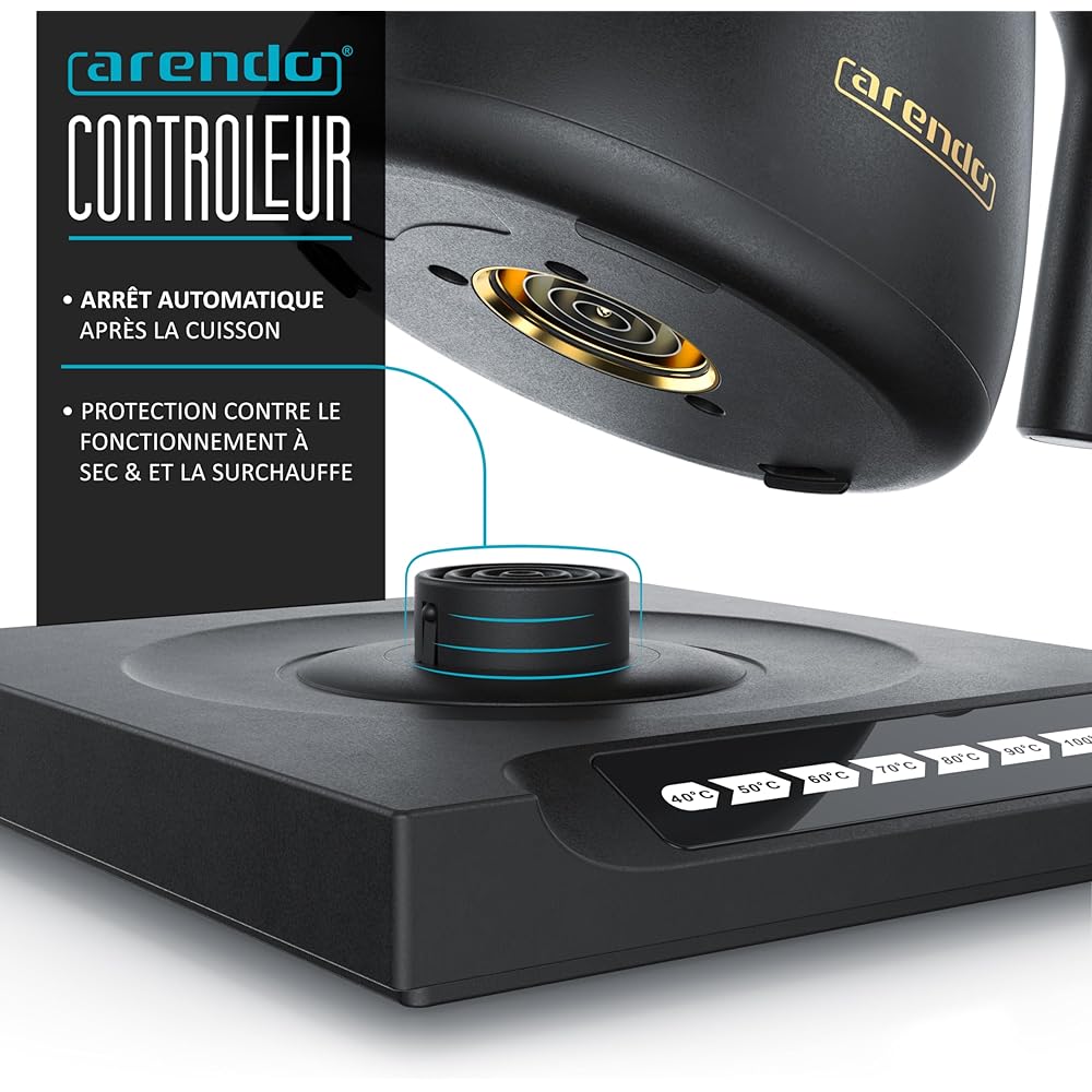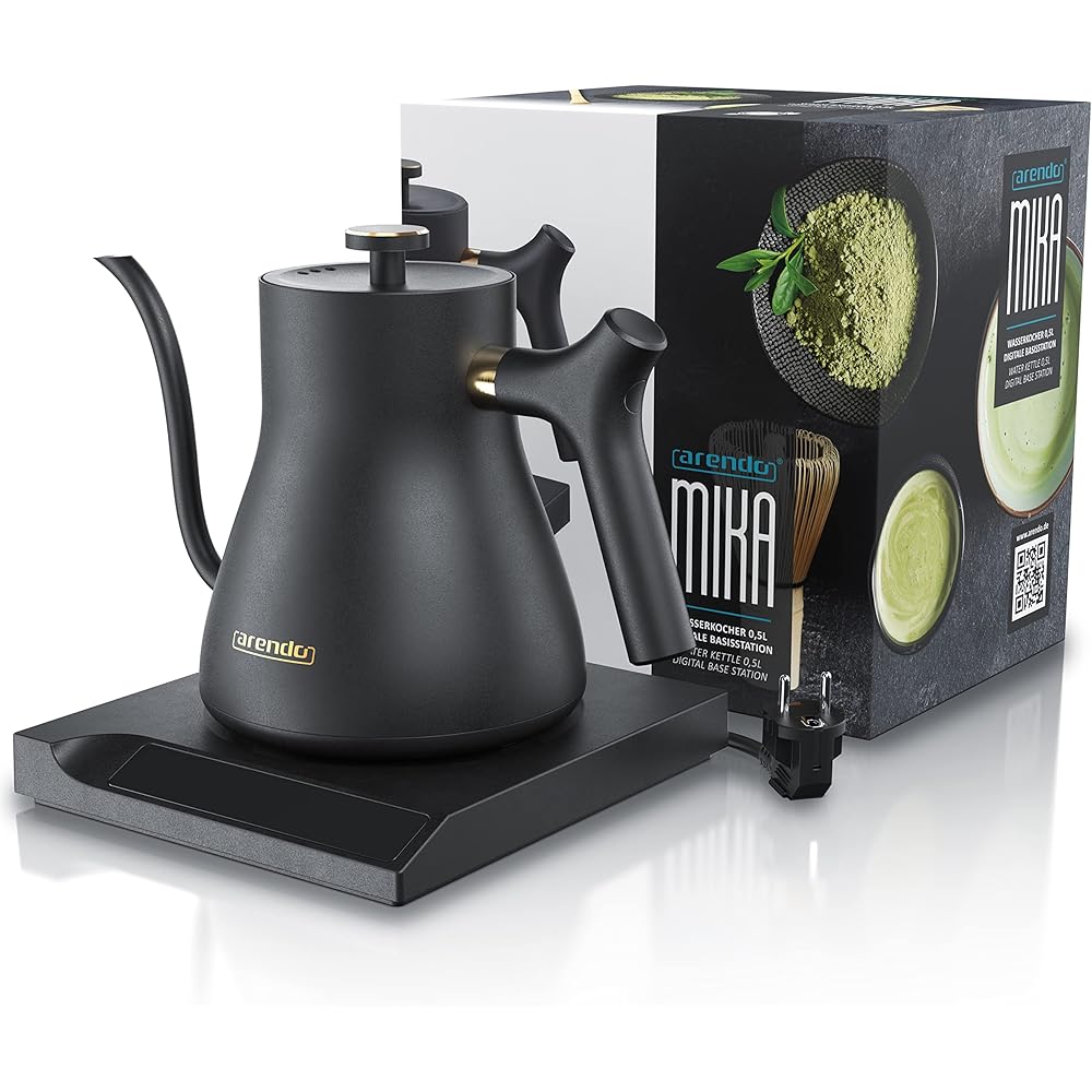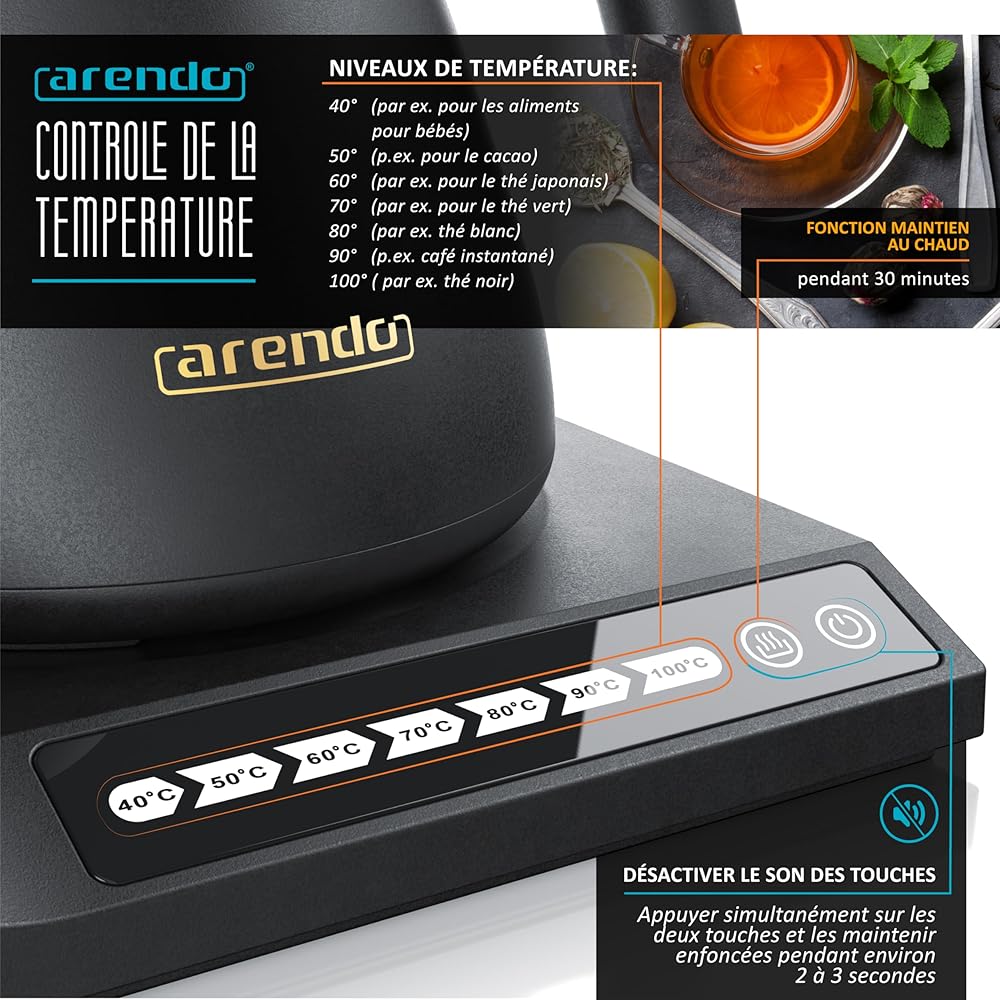 Arendo - Bouilloire éléctrique MIKA 0,5 litre - Station de base 360° - Sélection de 7 températures, de 40 à 100 degrés - Acier inoxydable - Protection contre la surchauffe - Sans BPA - Design japonais : Cuisine et Maison