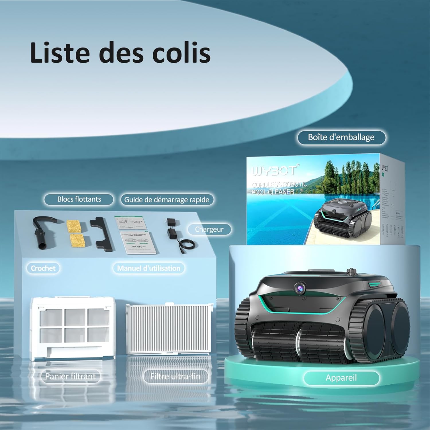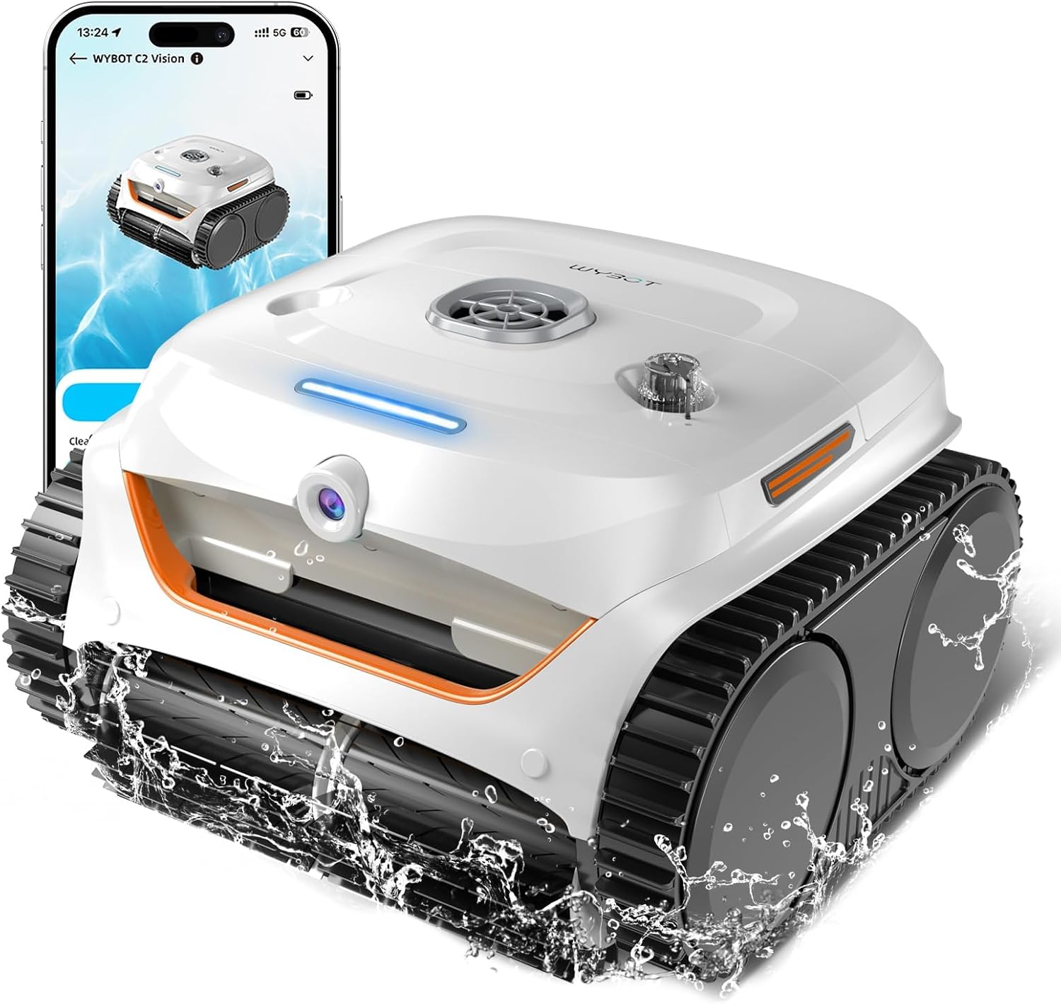 WYBOT C2 Vision AI caméra Robot Piscine sans Fil avec Batterie, Robot de Piscine Sol et Mur, Filtration à Deux Couches, Aspiration puissante, pour piscines enterrées jusqu'à 180㎡