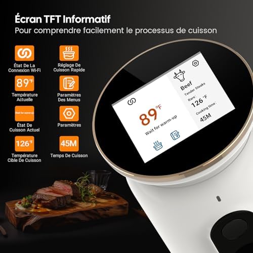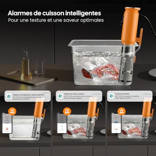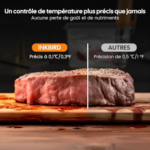 INKBIRD WiFi Thermoplongeur Sous Vide ISV 101W, Cuisson Basse Température 1000W: Écran TFT, Cuisson De Réservation App, Protection Du Niveau D'eau, Avertissement De Température, 0℃~95℃, Réglable 0,1℃ : Cuisine et Maison
