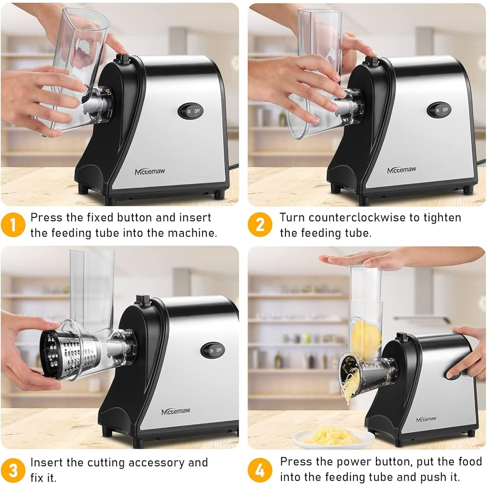 Meykey Coupe-légumes électrique, 5 en 1 Râpe a Légumes Électrique, Hachoir multifonctionnel Râpe, Râpe Carottes Electrique, 250W avec 5 cônes en acier inoxydable Nouveau : Cuisine et Maison