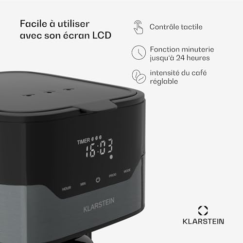 KLARSTEIN Cafetiere 1.2L avec Filtre, Cafetières, Machines à Café et Machines à Expresso 800W, Cafetière Electrique en Acier Inoxydable, Machine à Café à Filtre, Machine a Cafe Chaud et Glacé : Cuisine et Maison