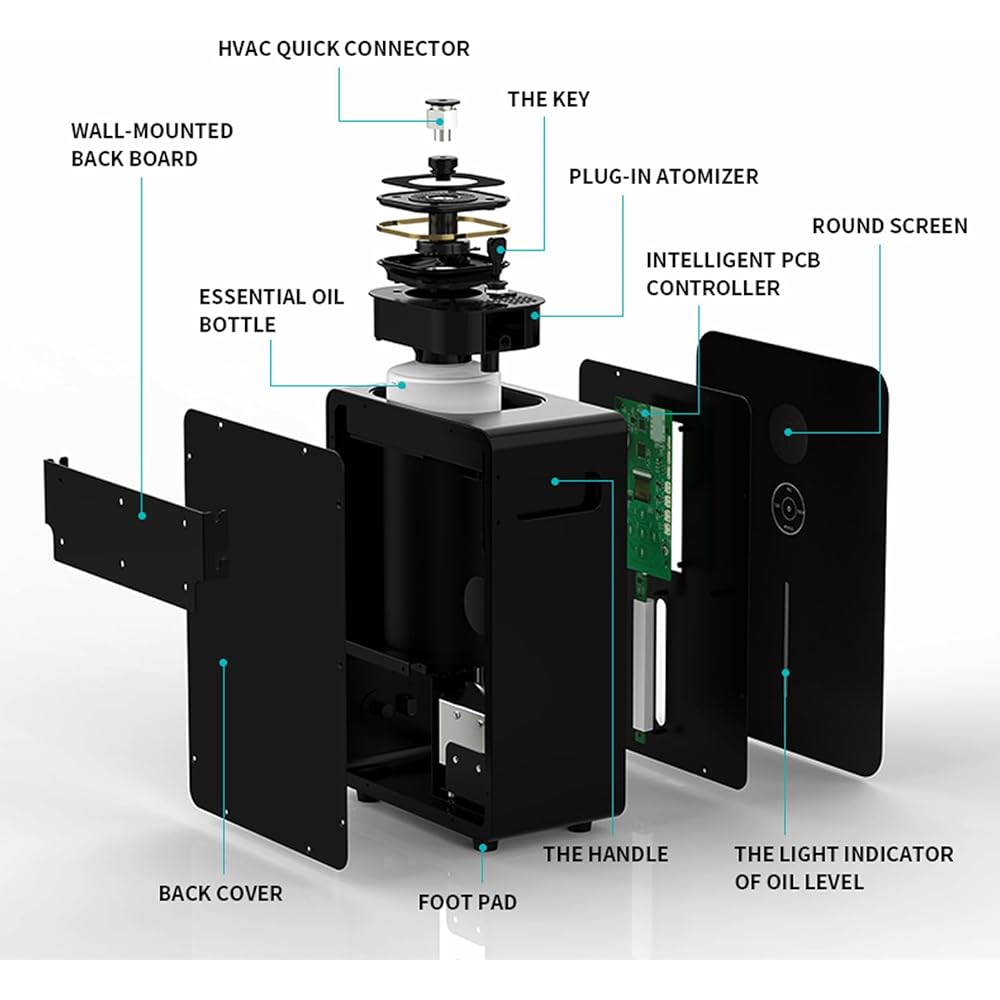Diffuseur D'huiles Essentielles Intelligent, Diffuseur D'arômes, Grande Surface, Excellente Diffusion, Contrôle WiFi, Alliage D'aluminium Noir, Taille 800ML, pour Hôtel, (Prise : Hygiène et Santé