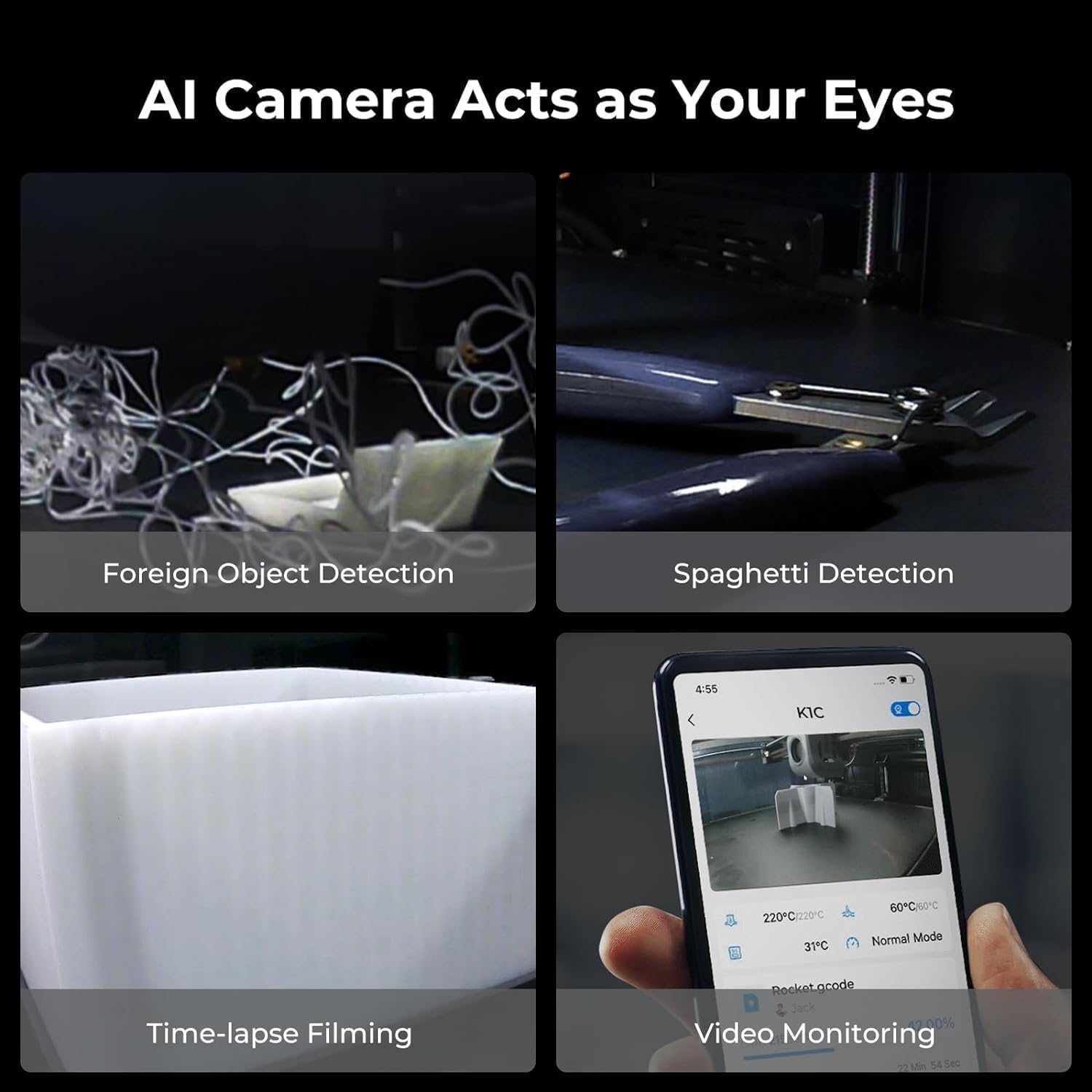 Imprimante 3D Creality K1C, nouveau modèle officiel 2024 (220 mm x 220 mm x 250 mm)