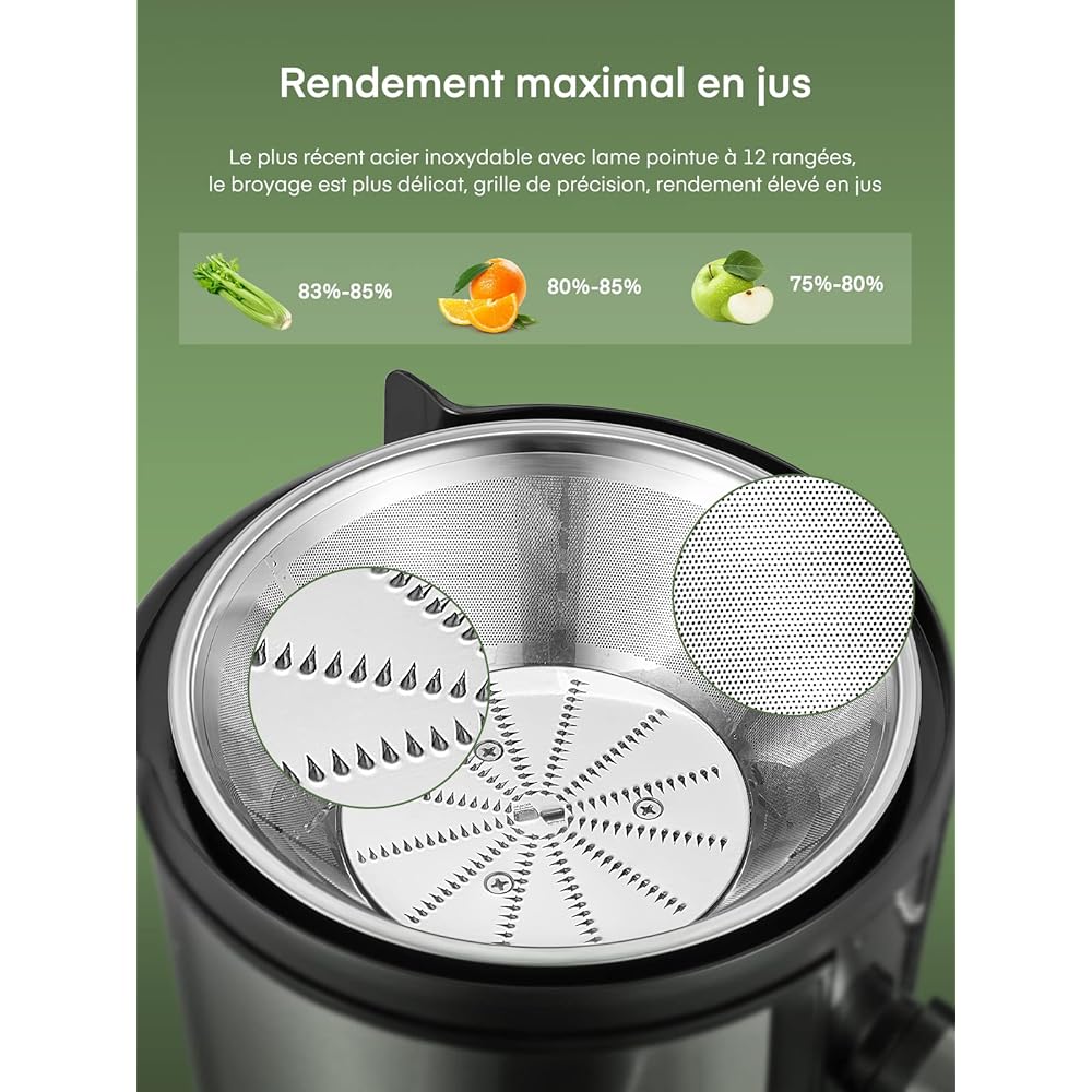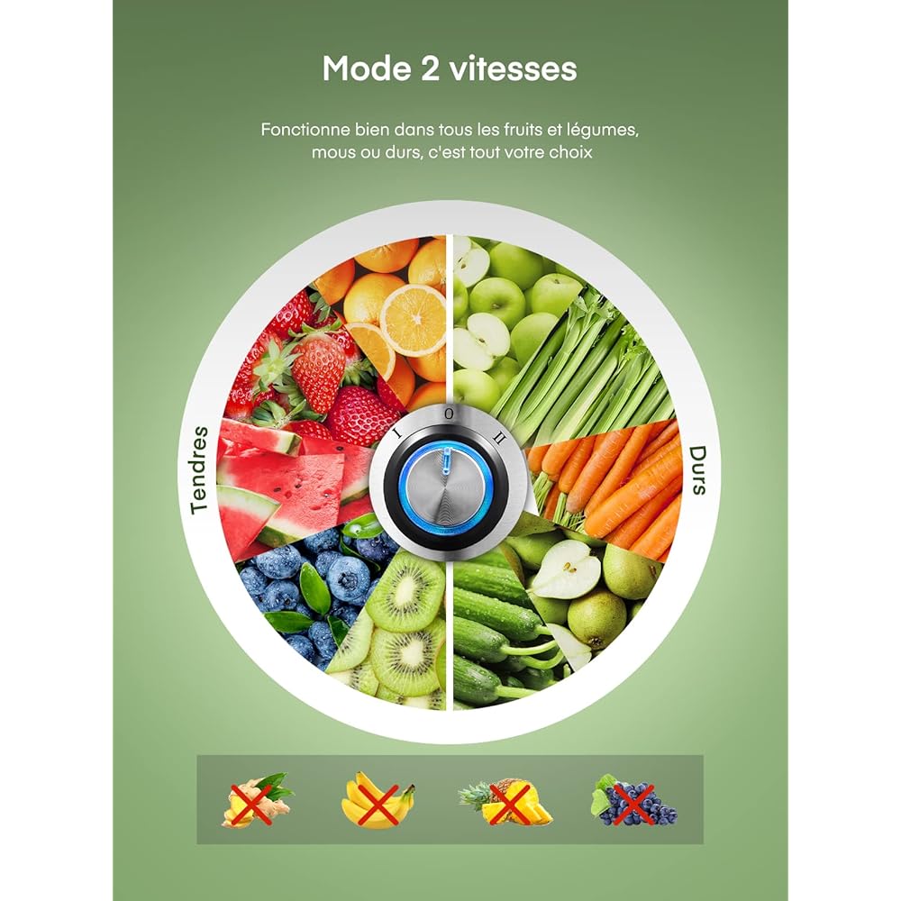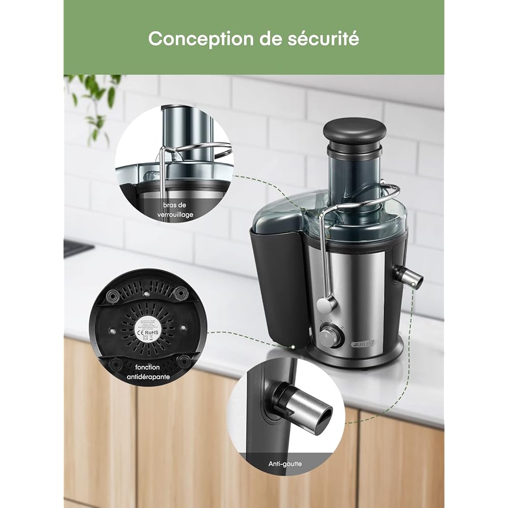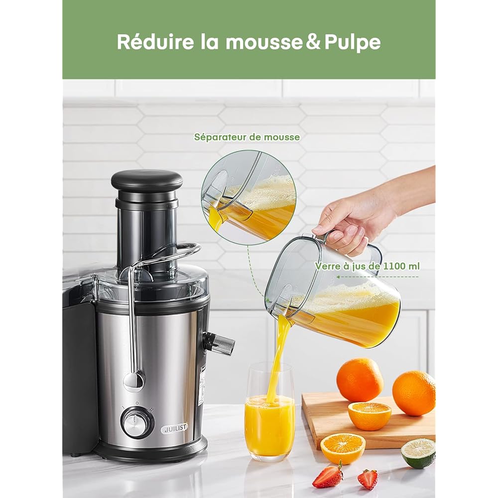 Juilist 800W Centrifugeuse Extracteur de Jus, Centrifugeuse Fruits et Legumes à 2 Vitesses, 75MM Large Bouche en Acier Inox, Design Anti-goutte, 1100ml Pichet à Jus et Nettoyage Facile : Cuisine et Maison