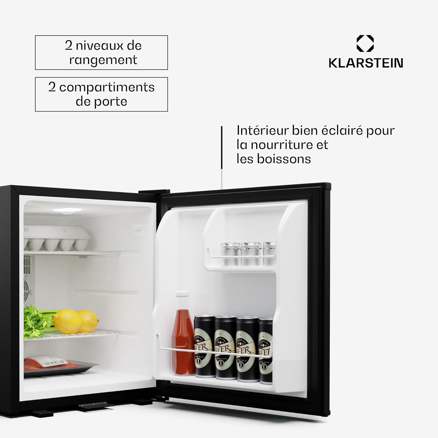 Klarstein Mini réfrigérateur et congélateur intérieur 44 L, réfrigérateur avec étagères réglables