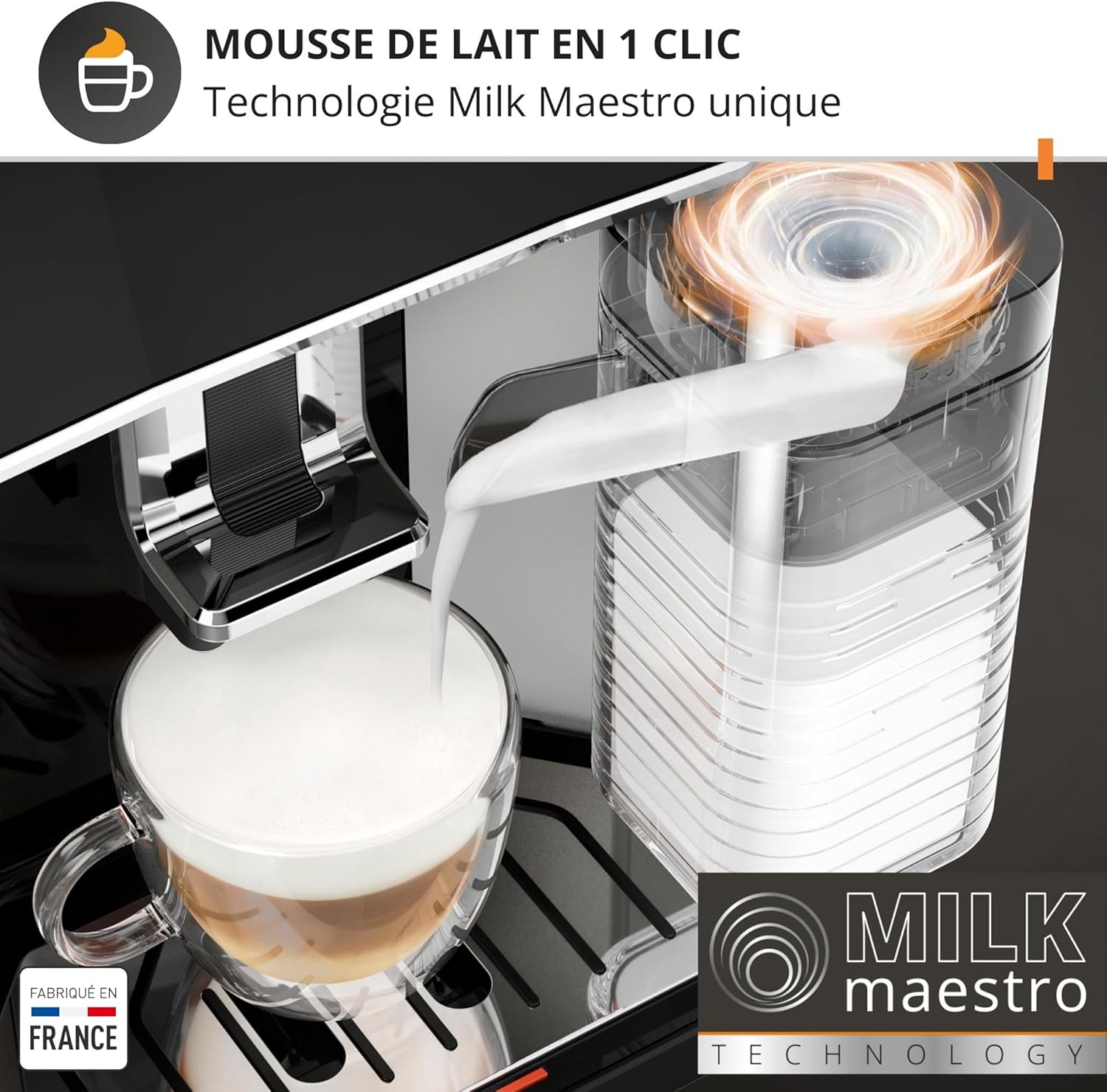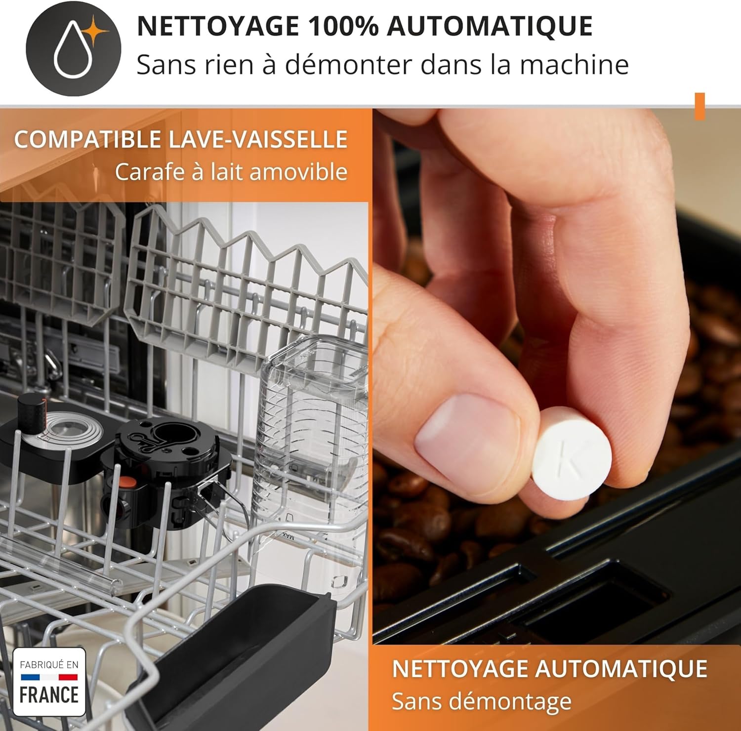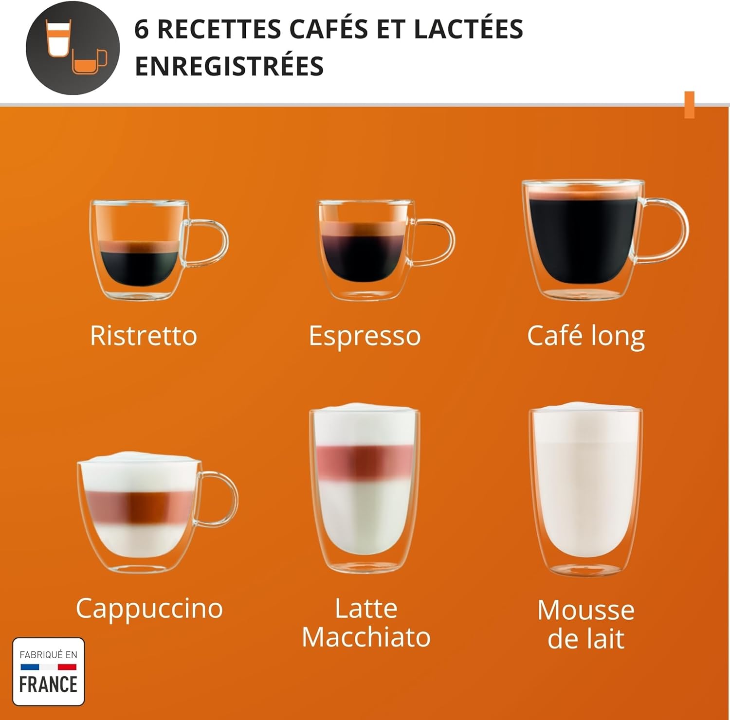 Krups Sensation Lait, Machine à café grains, machine expresso, 6 boissons, Carafe à lait, Cappuccino, Interface tactile, Nettoyage automatique, Silver, EA912E10