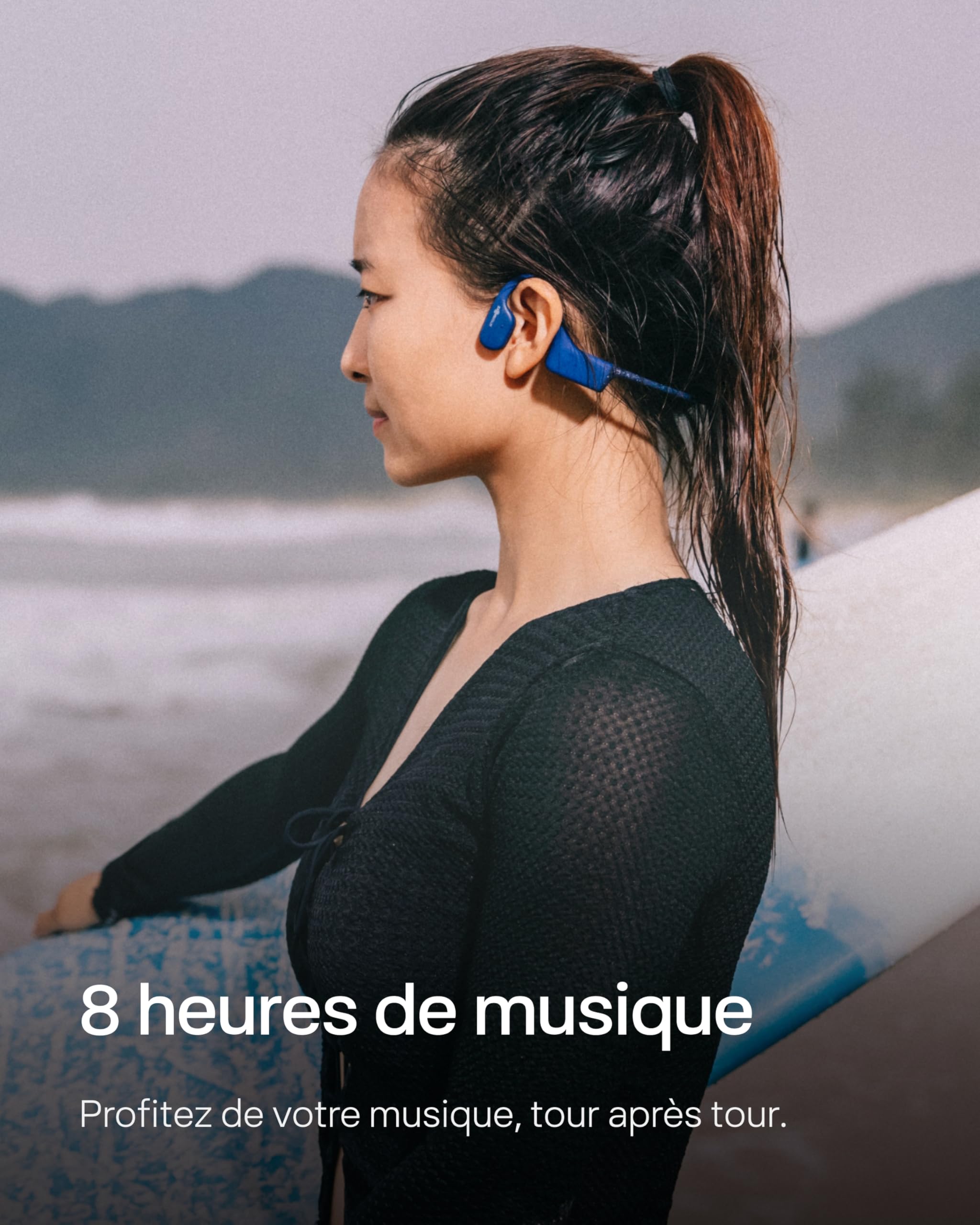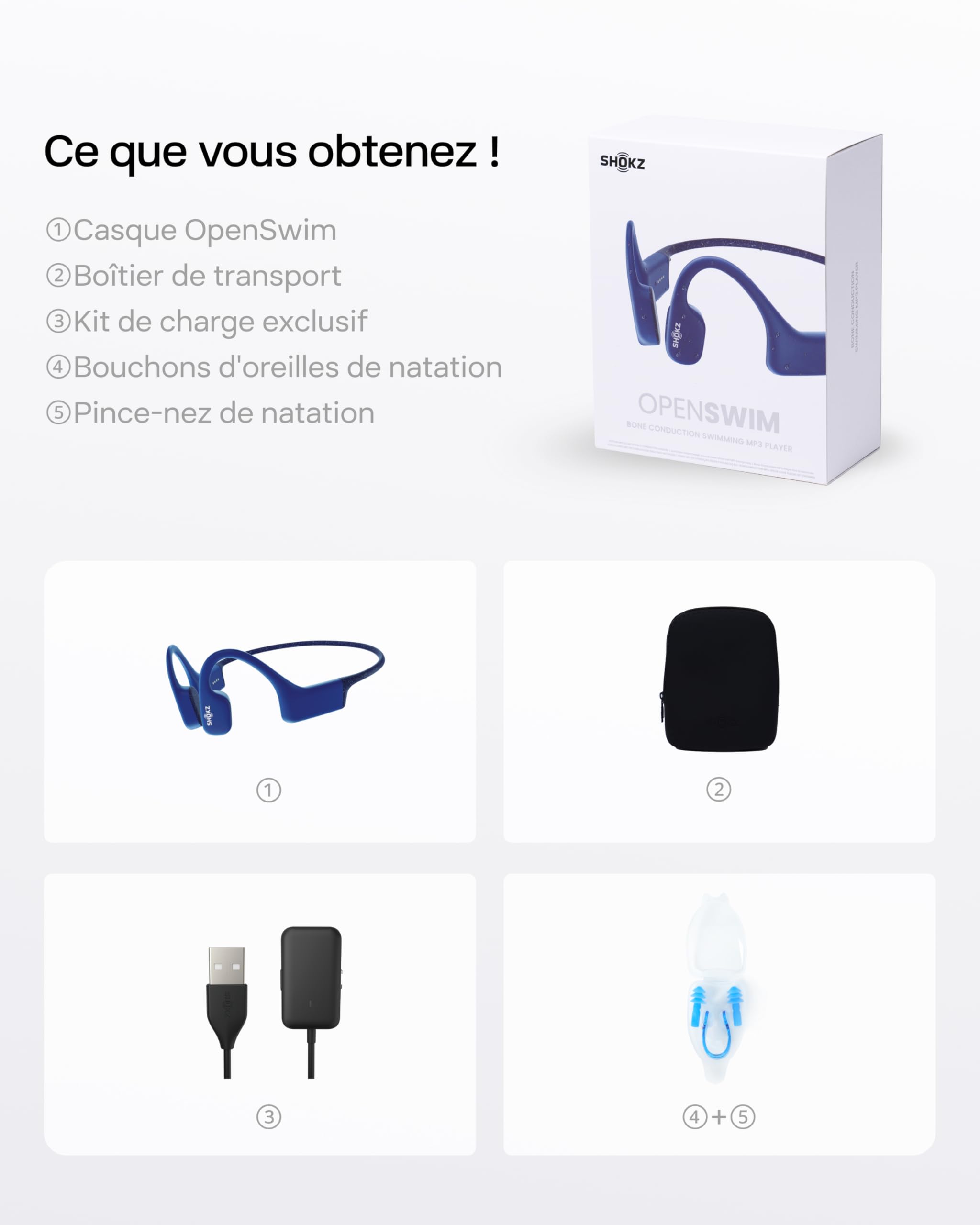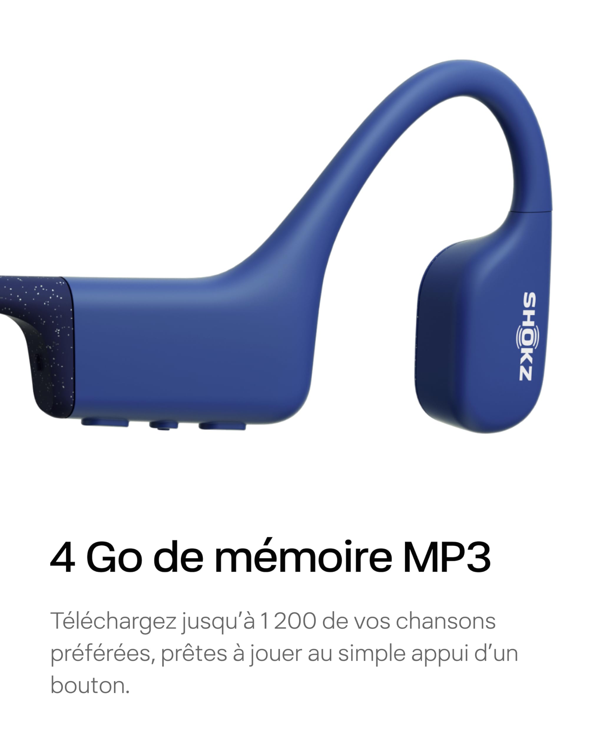 SHOKZ OpenSwim Casque à conduction osseuse, lecteur MP3 de natation étanche IP68, écouteurs de sport oreilles libres avec 4 GB de mémoire, 8H d’autonomie, bouchons d’oreilles(sans Bluetooth), Bleu