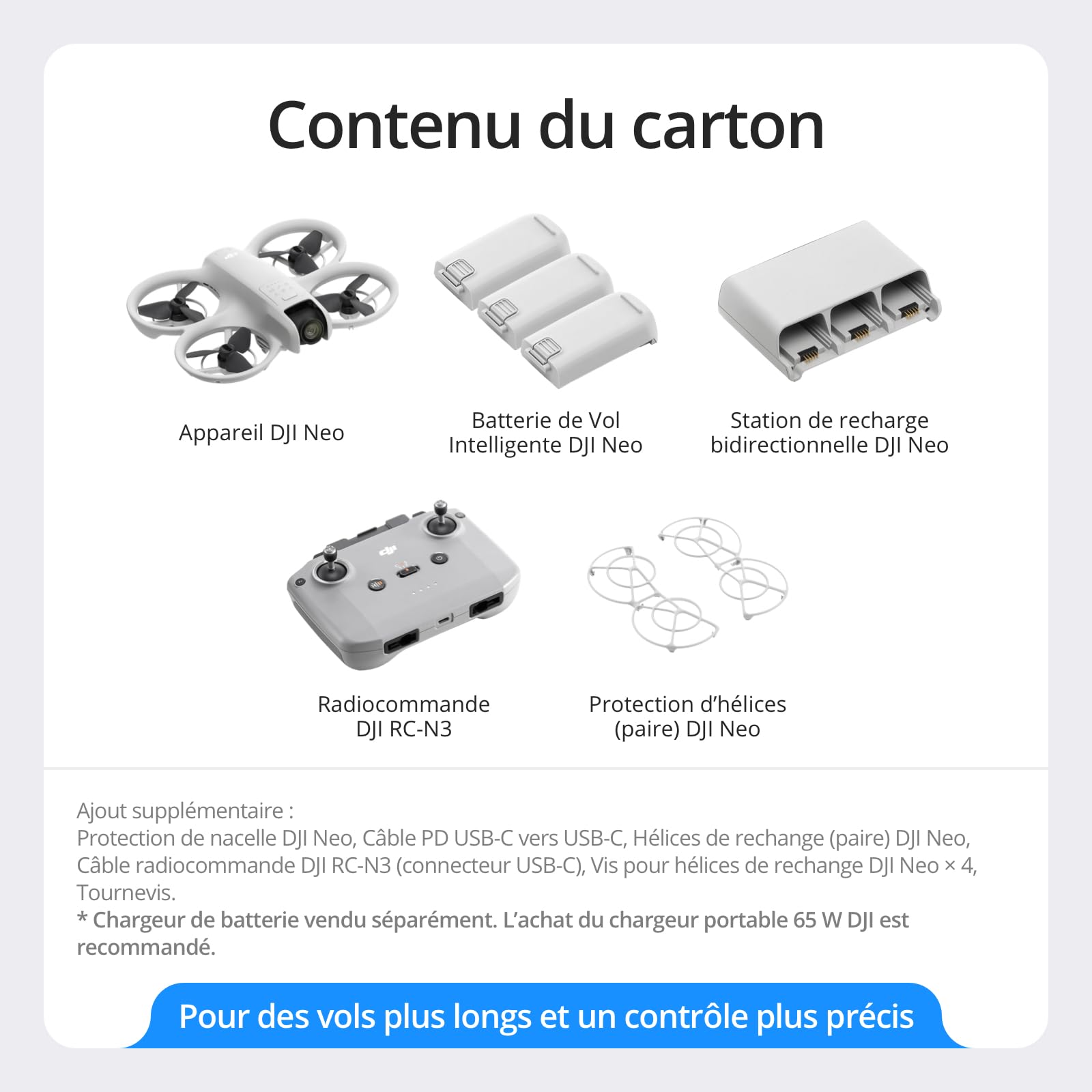 Bundle Fly More DJI Neo, Mini Drone avec Caméra 4K UHD pour Adultes, Drone Suiveur qui Vole Seul de 135 g, Décollage du Creux de la Main, Suivi de Suj