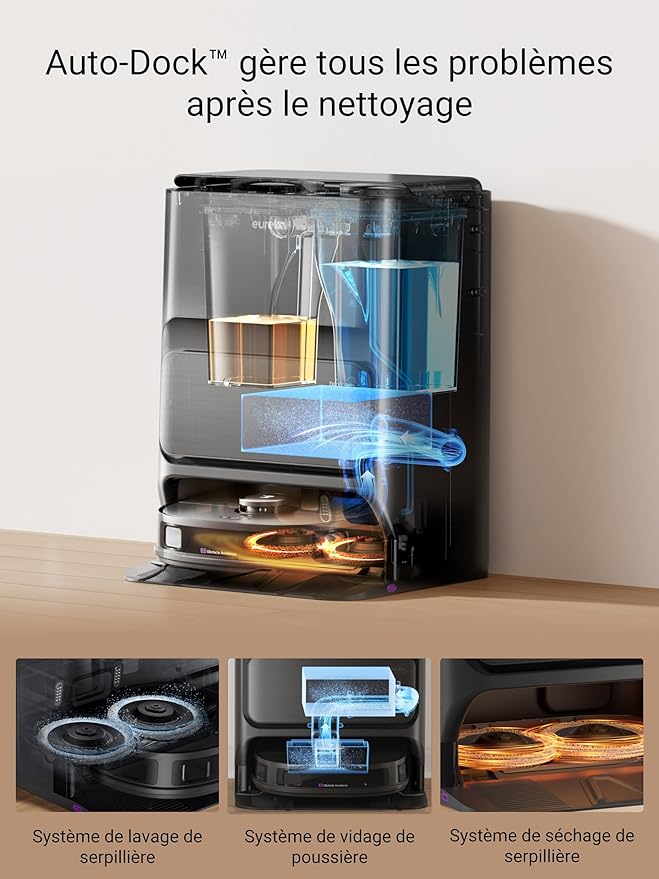 Eureka J12 Ultra Robot Aspirateur Laveur avec Station Automatique de Vidange Lavage Séchage, Aspirateur Robot de 5000Pa, Serpillière Rotative, Double LiDAR Navigation, Évitement d'Obstacle 3D IA