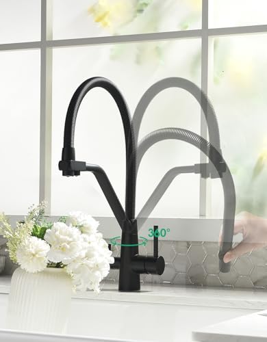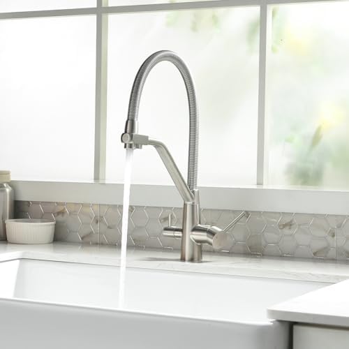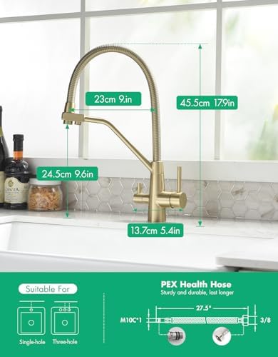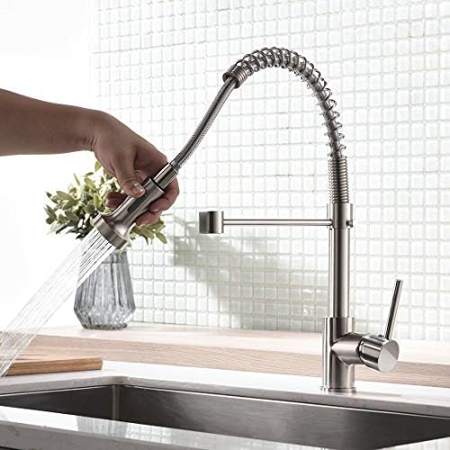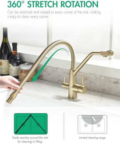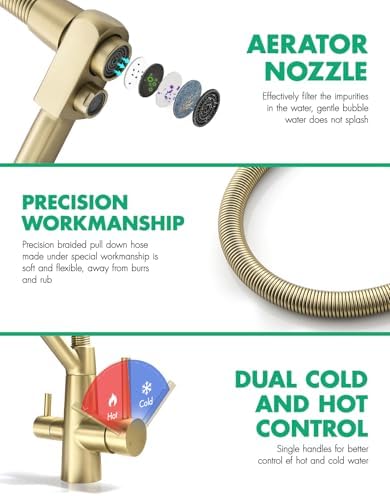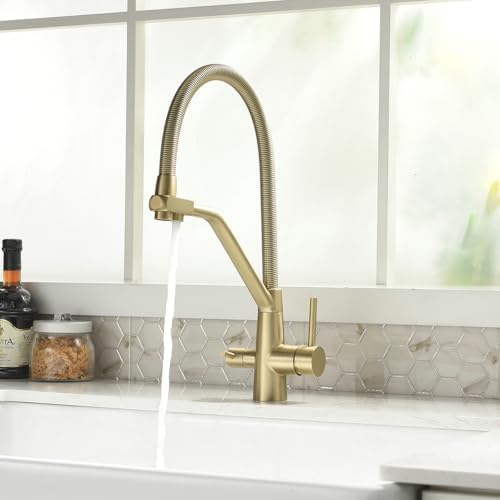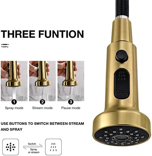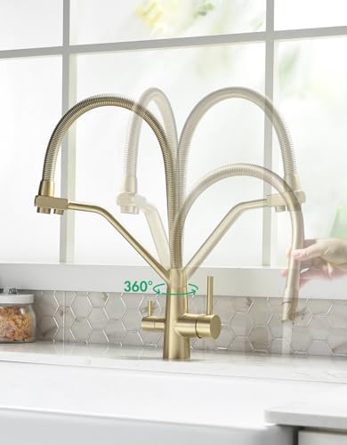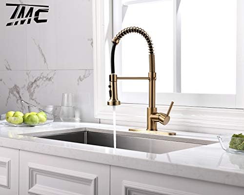 TIMACO Robinet de cuisine Pivotant à 360° Doré brossé Avec douchette extractible Mitigeur de commande ordinaire du commerce : Bricolage