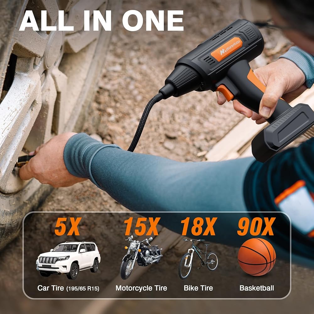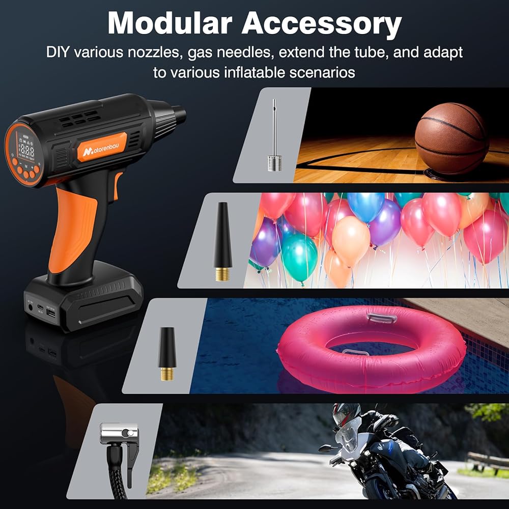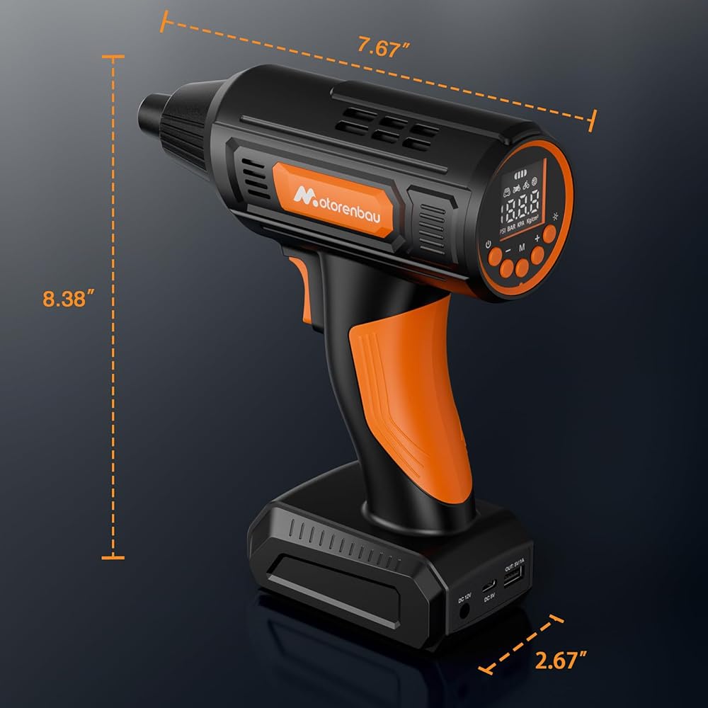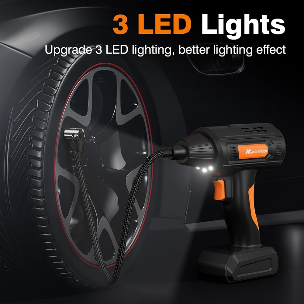 Motorenbau Gonfleur Pneus Voiture Numérique Portable,120W Compresseur d'air,Pompe à Air Alimentée par Batterie 12V,avec lumière LED,manomètre numérique,pompe à air rapide : Bricolage