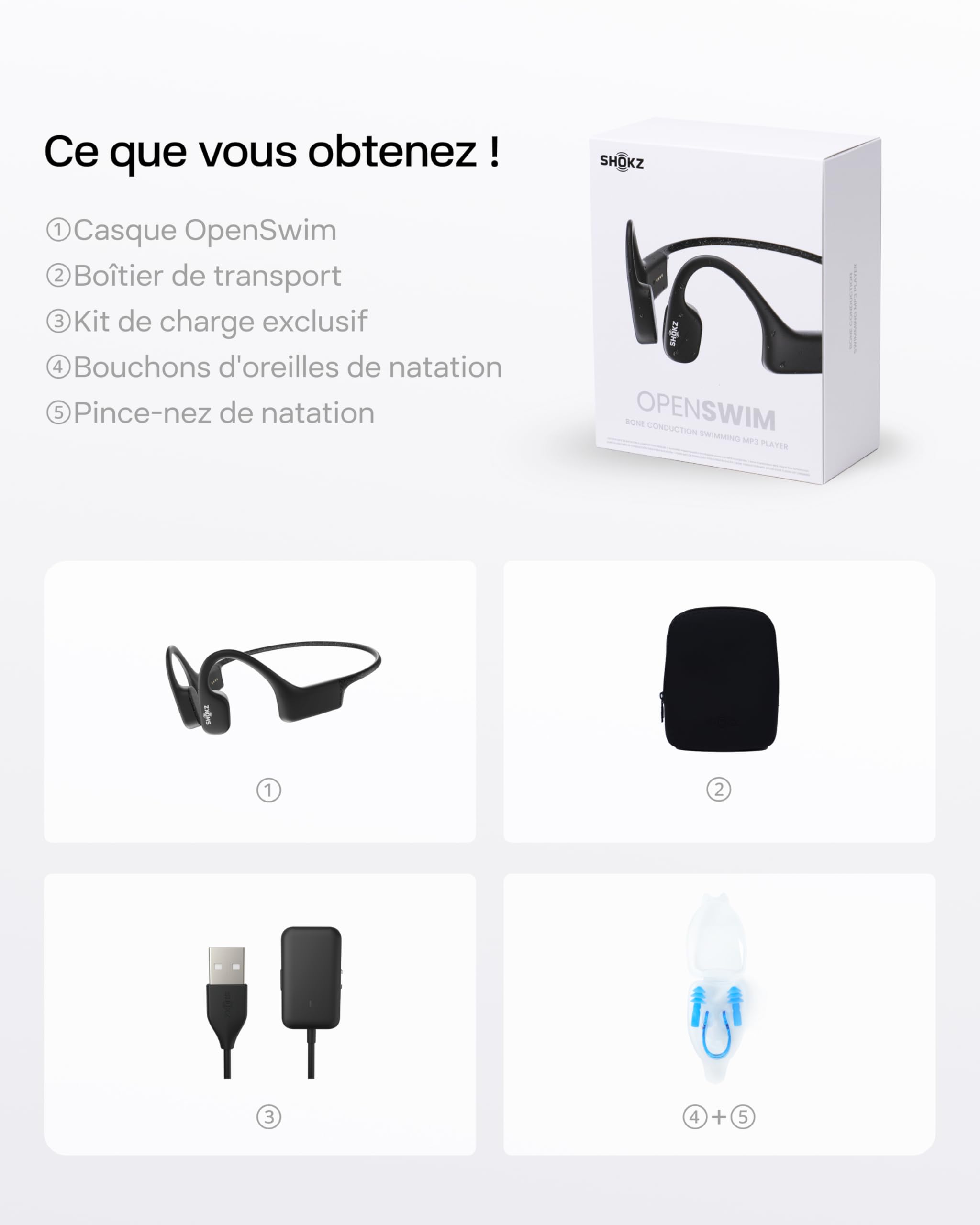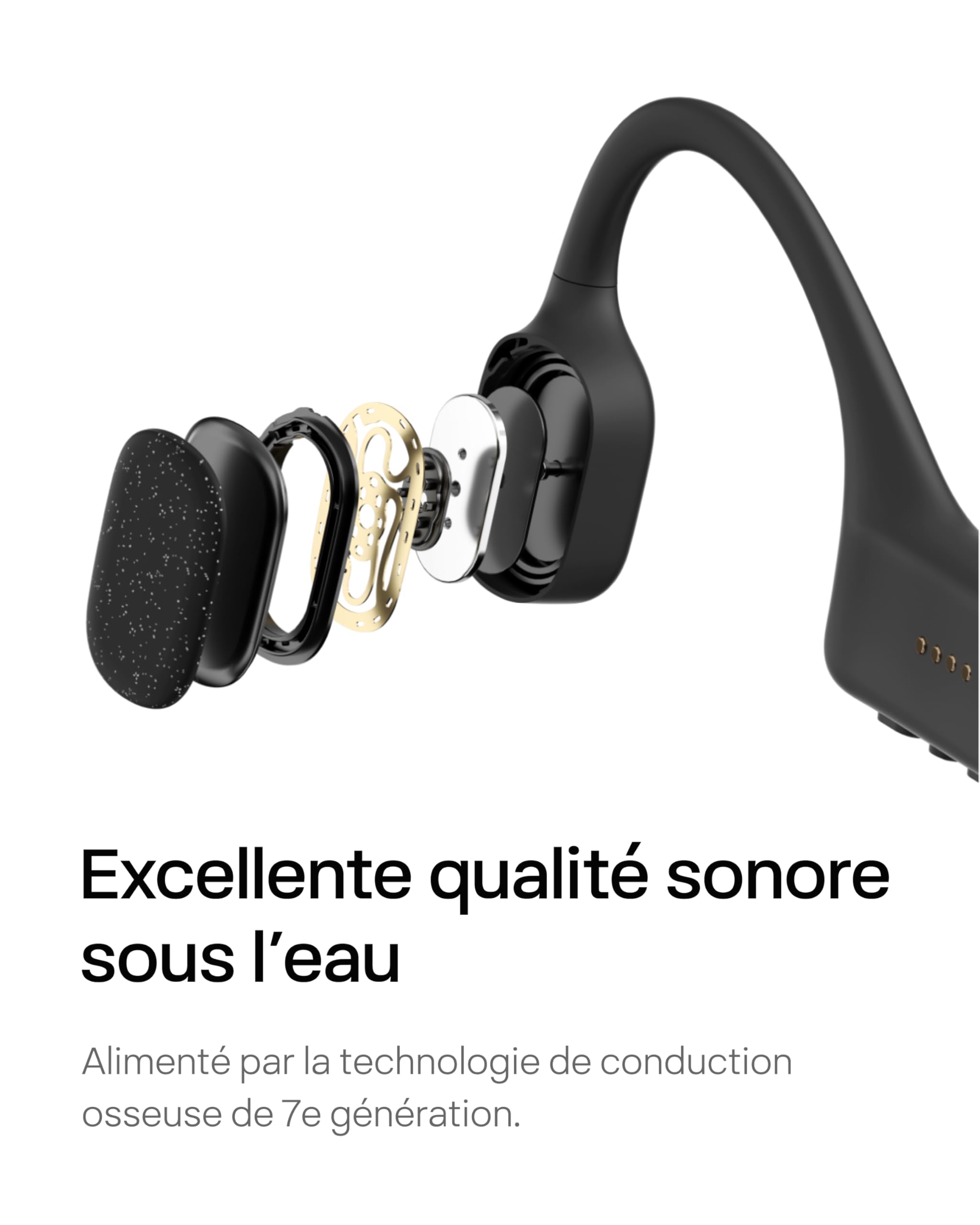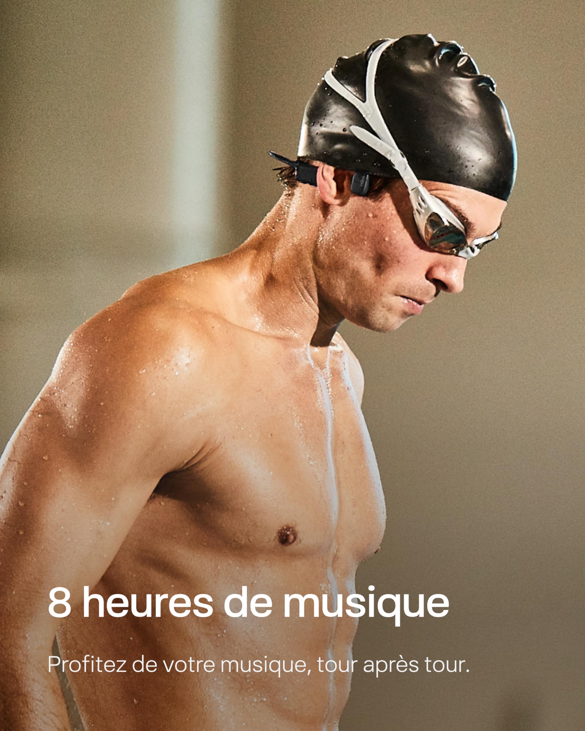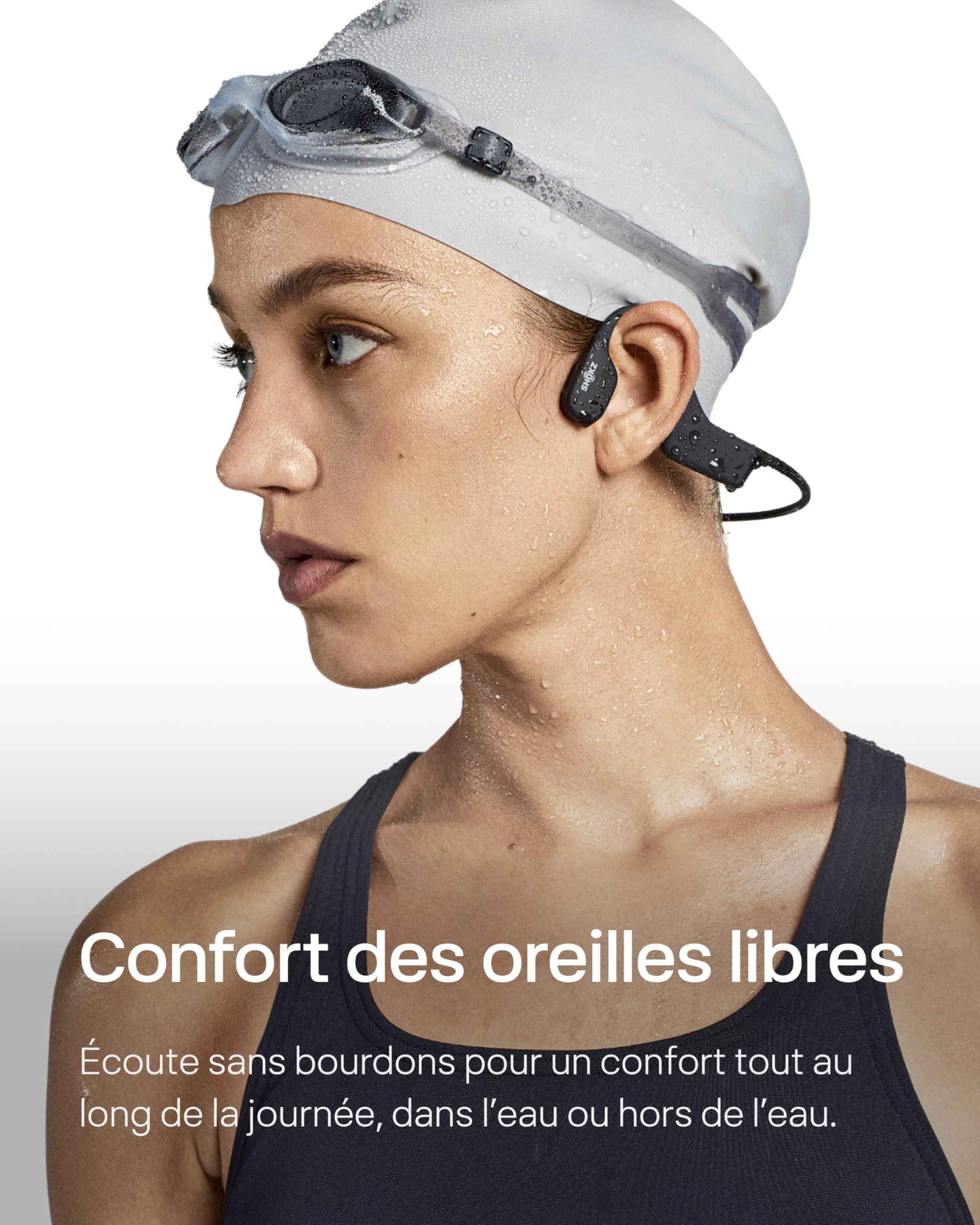 SHOKZ OpenSwim Casque à Conduction osseuse, Lecteur MP3 de Natation étanche IP68, écouteurs de Sport Oreilles Libres avec 4 GB de mémoire, 8H d’autonomie, Bouchons d’oreilles (sans Bluetooth), Noir