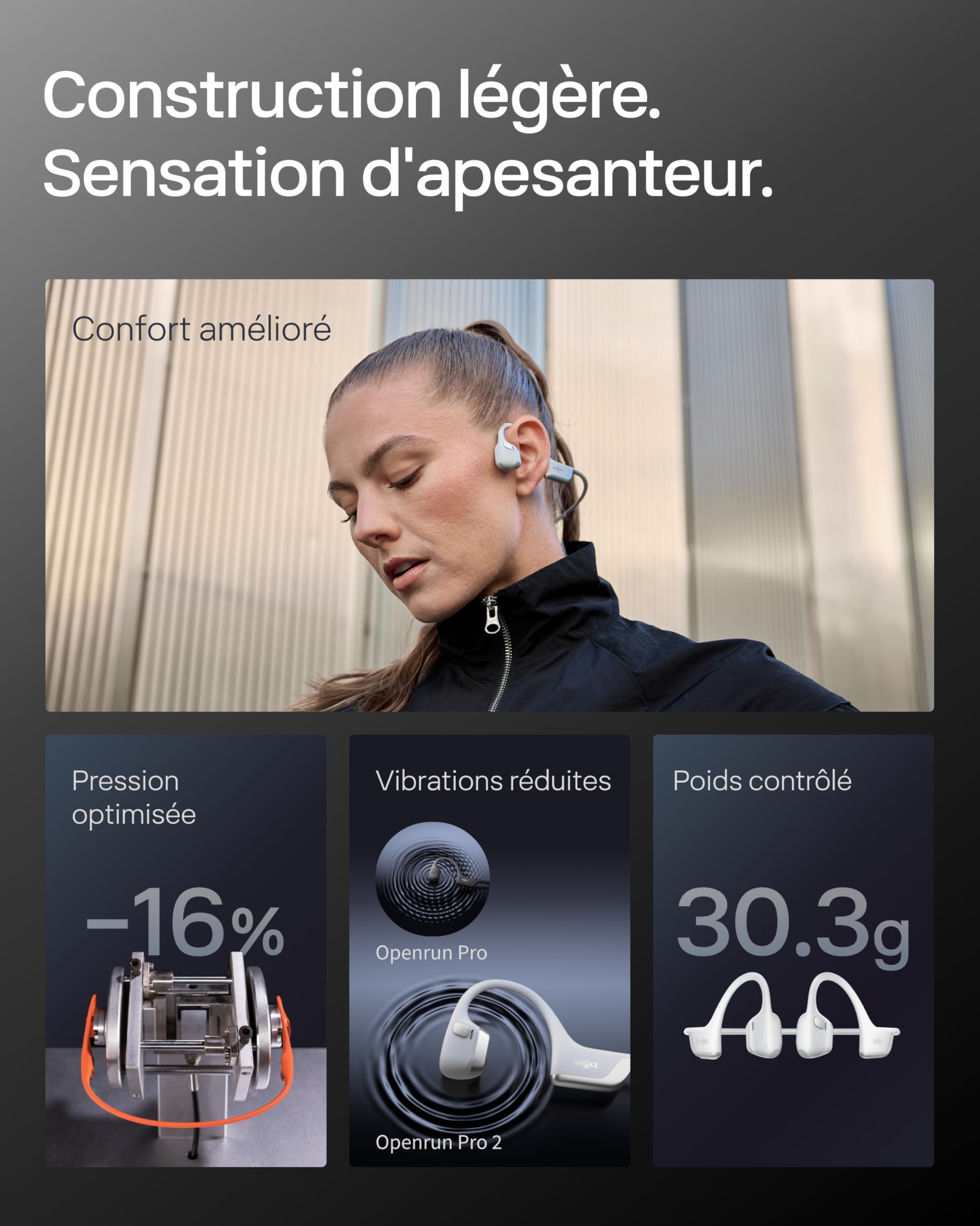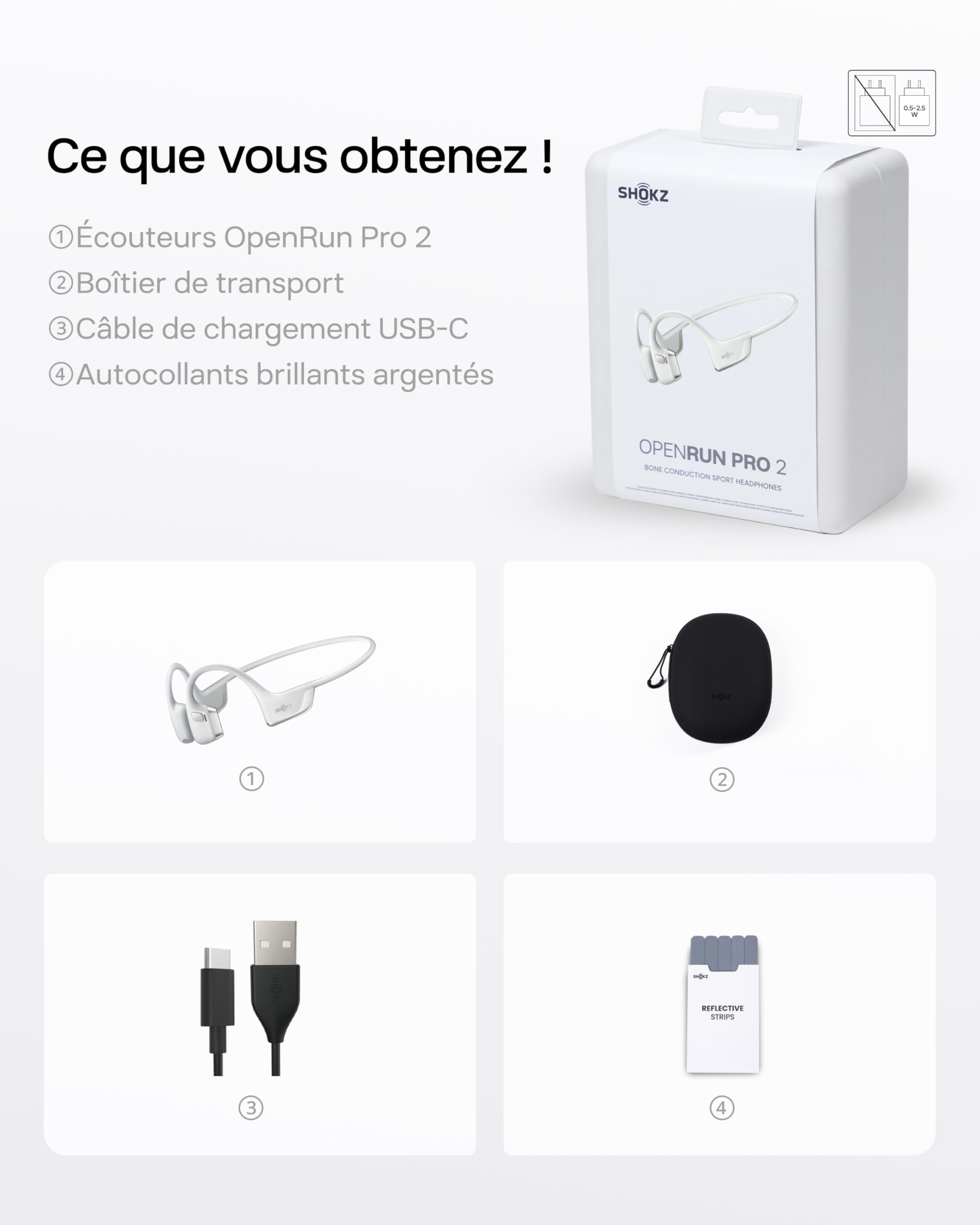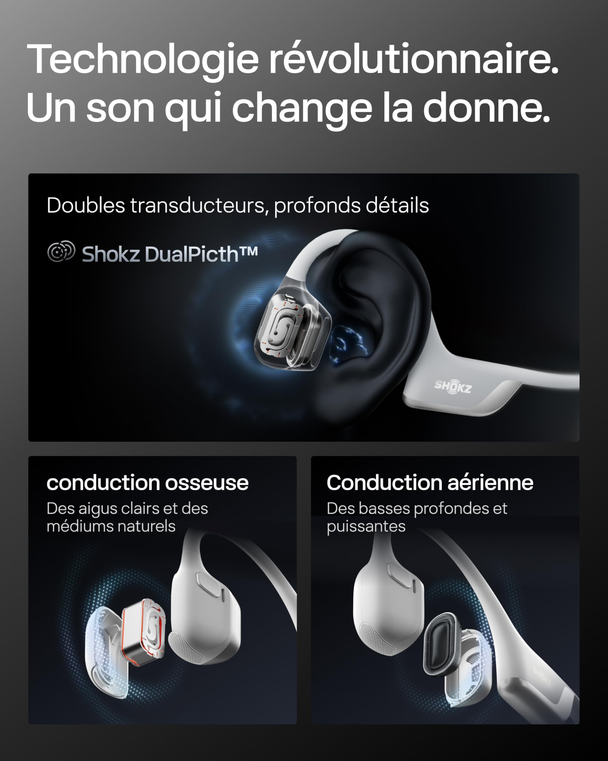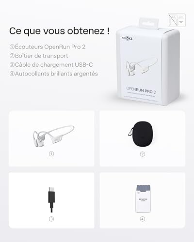 SHOKZ Casque à Conduction Osseuse OpenRun Pro 2, Écouteurs sans Fil Bluetooth 5.3, Microphones Réducteurs de Bruit, Étanchéité IP55, 12h d’Autonomie, Charge Rapide USB-C, Argent