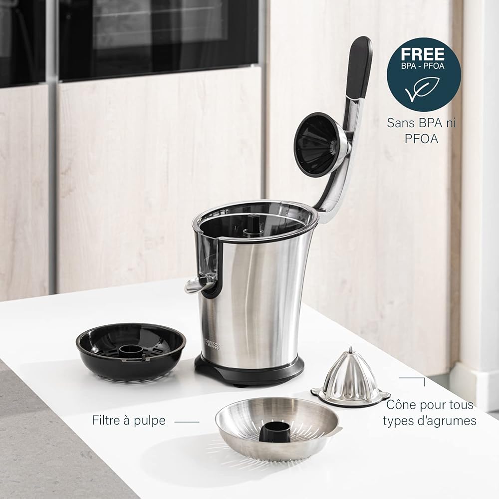 Princess Presse-agrumes Master Pro – C?ne en acier inoxydable – 300 W – Filtre à pulpe en inox – Bras à levier professionnel – Réservoir avec système anti-goutte – 201860 : Cuisine et Maison