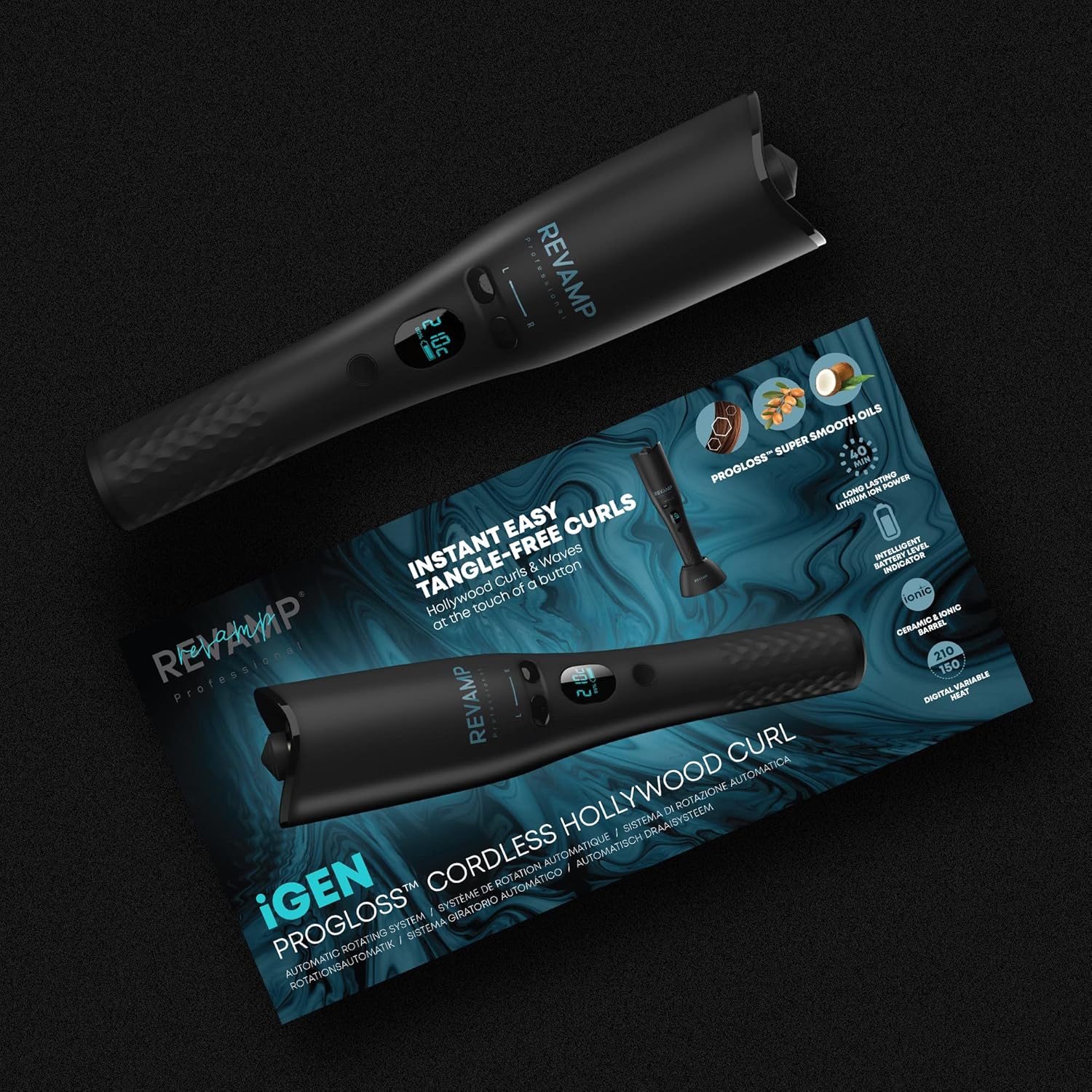 Revamp Friseur Rotatif Automatique iGen Progloss Sans Fil Hollywood Curl - Friseurs Automatiques Effet Ondulé, Cheveux Bouclés Soyeux, Fer à Friser à Options Chauffage Variables