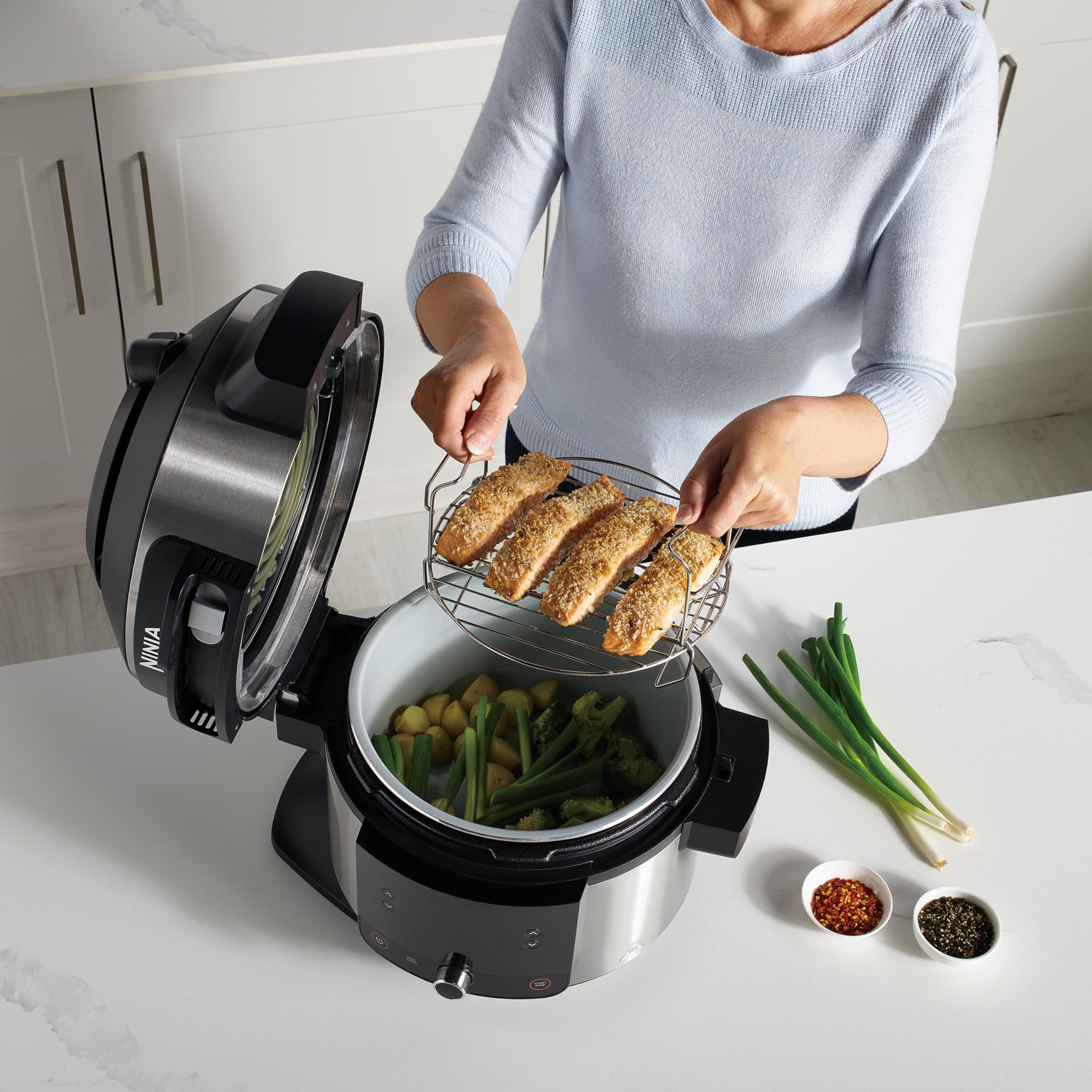 Ninja Foodi Multicuiseur avec SmartLid, 11 en 1, 6L, Autocuiseur Multifonction, Cuisson sous pression, Air Fryer, Friteuse à air, Vapeur combinée, Mij
