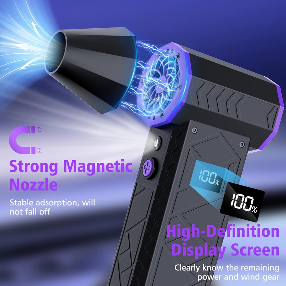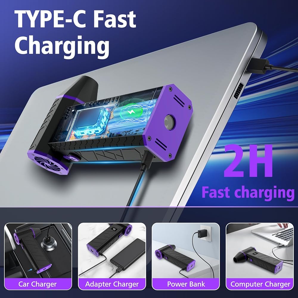 Souffleur Air Comprimé, 130000rpm Mini Aspirateur Voiture souffleur pc, 4 Vitesses Ajustables, Rechargeable Avec Affichage Hd,Pas de Cannelure,Souffleur Batterie pour Le Nettoyage de Clavier,Pc,Voitur : Fournitures de bureau