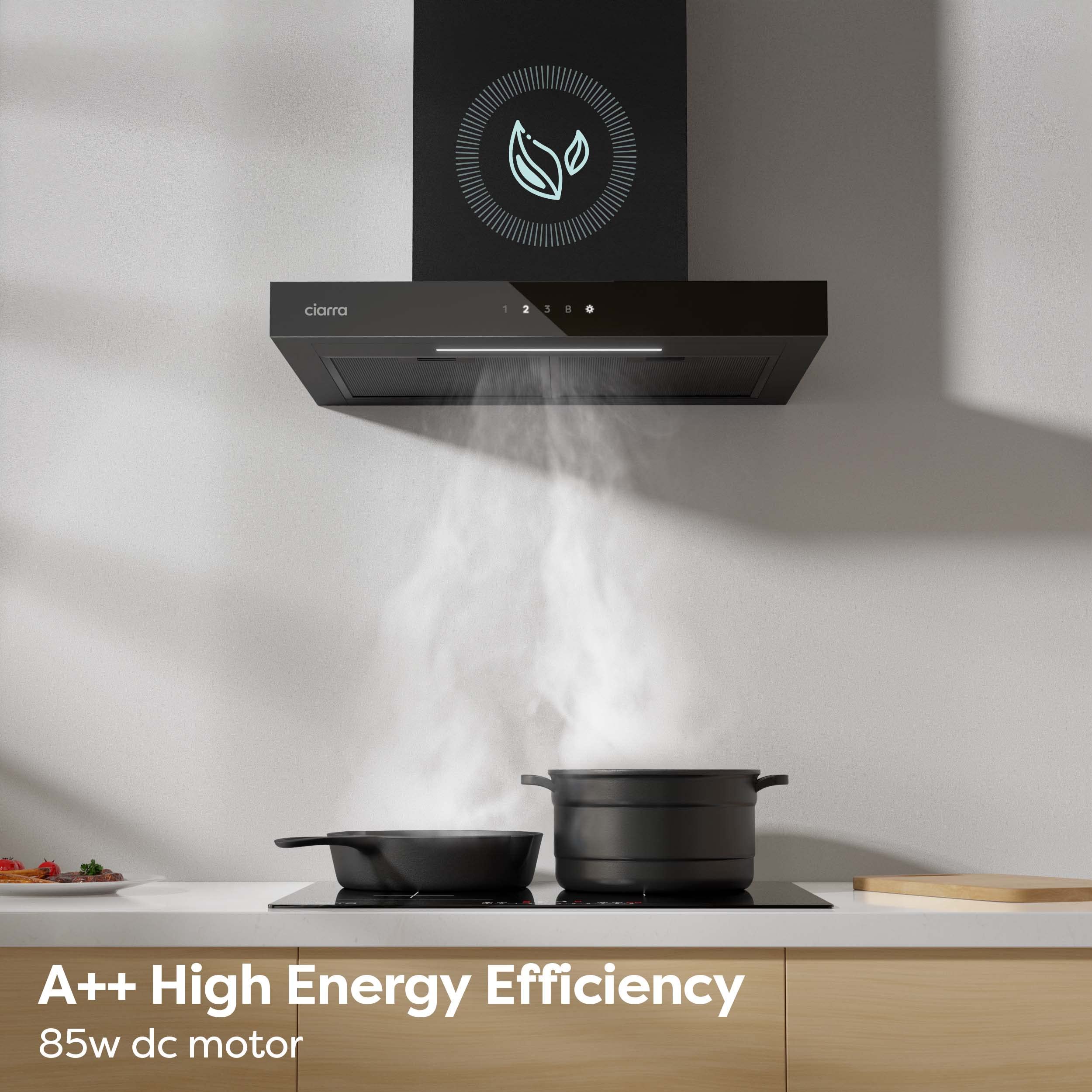 CIARRA CBCB6102 Hotte Aspirante 60 cm A+++ 650 m³/h - App & TouchControl - 4 Vitesses + Booster - Recyclage & Évacuation - Filtre à Charbon CBCF003 -