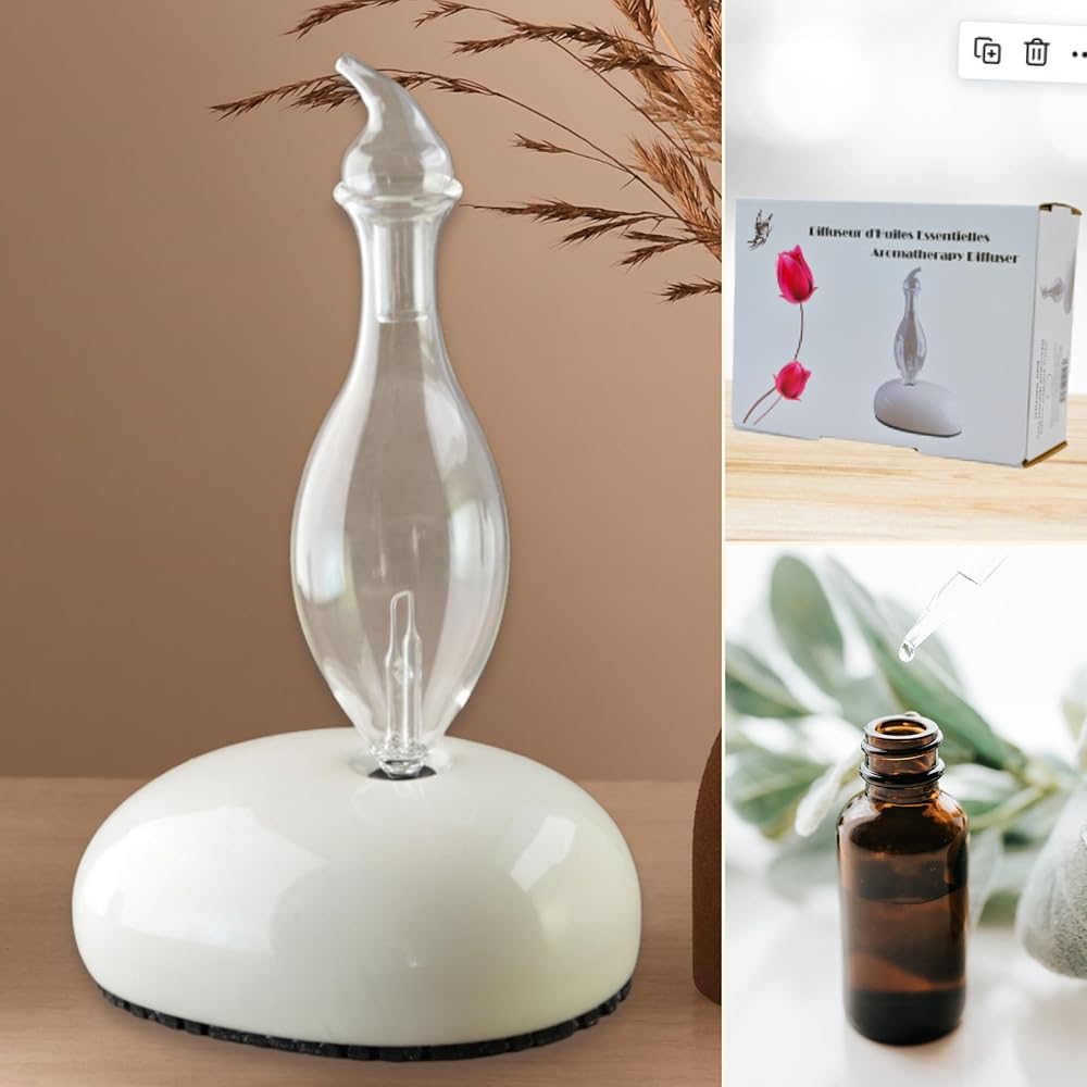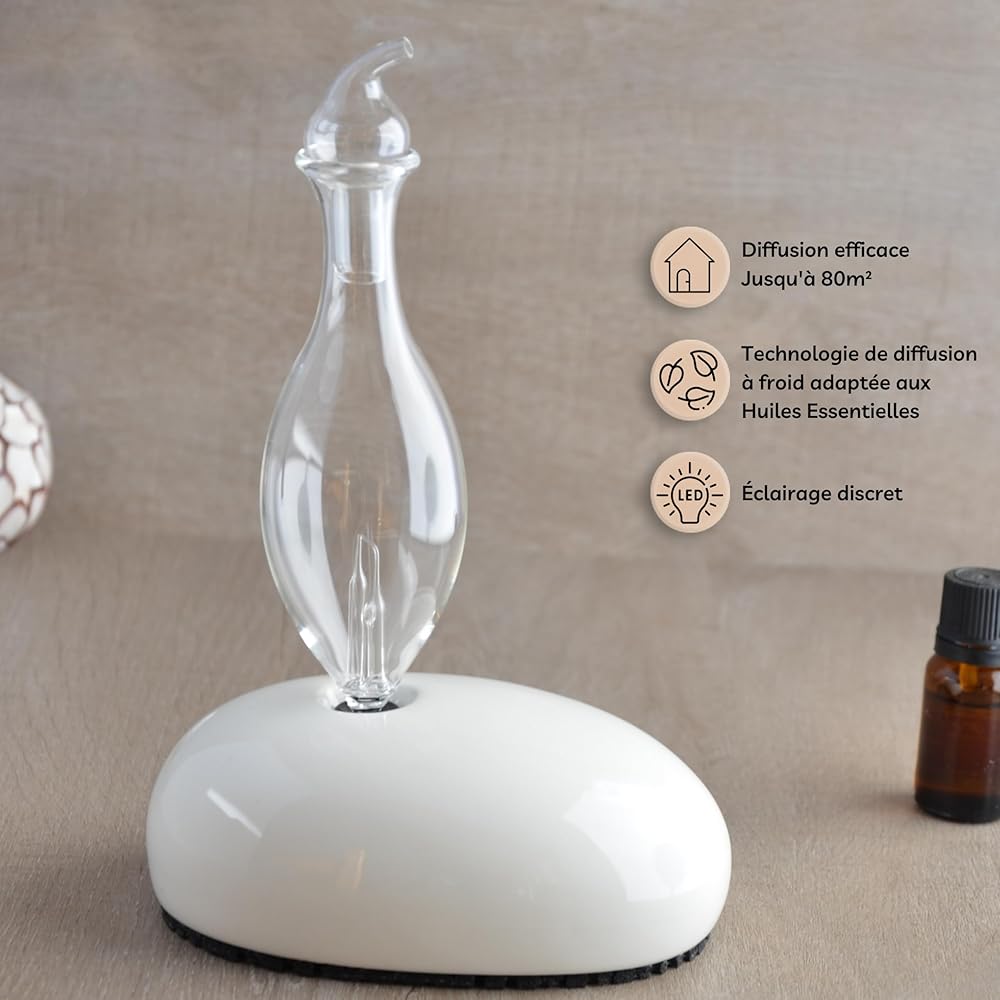 Zen’Arôme Diffuseur par Nébulisation Dan – Diffuseur d’Huiles Essentielles à Froid qui Conserve les Vertus des Huiles pour l’Aromathérapie – Nébulisateur En Céramique et en Verre – Puissance Ajustable : Hygiène et Santé