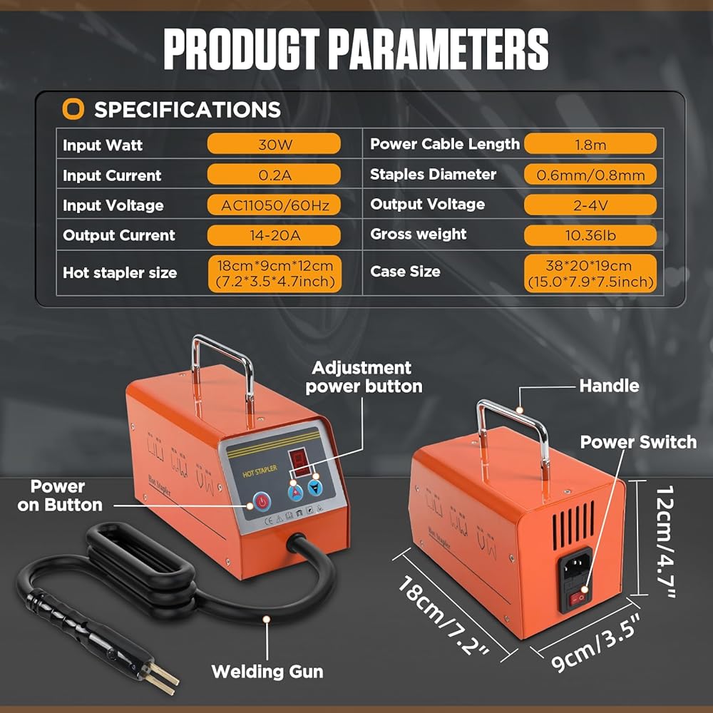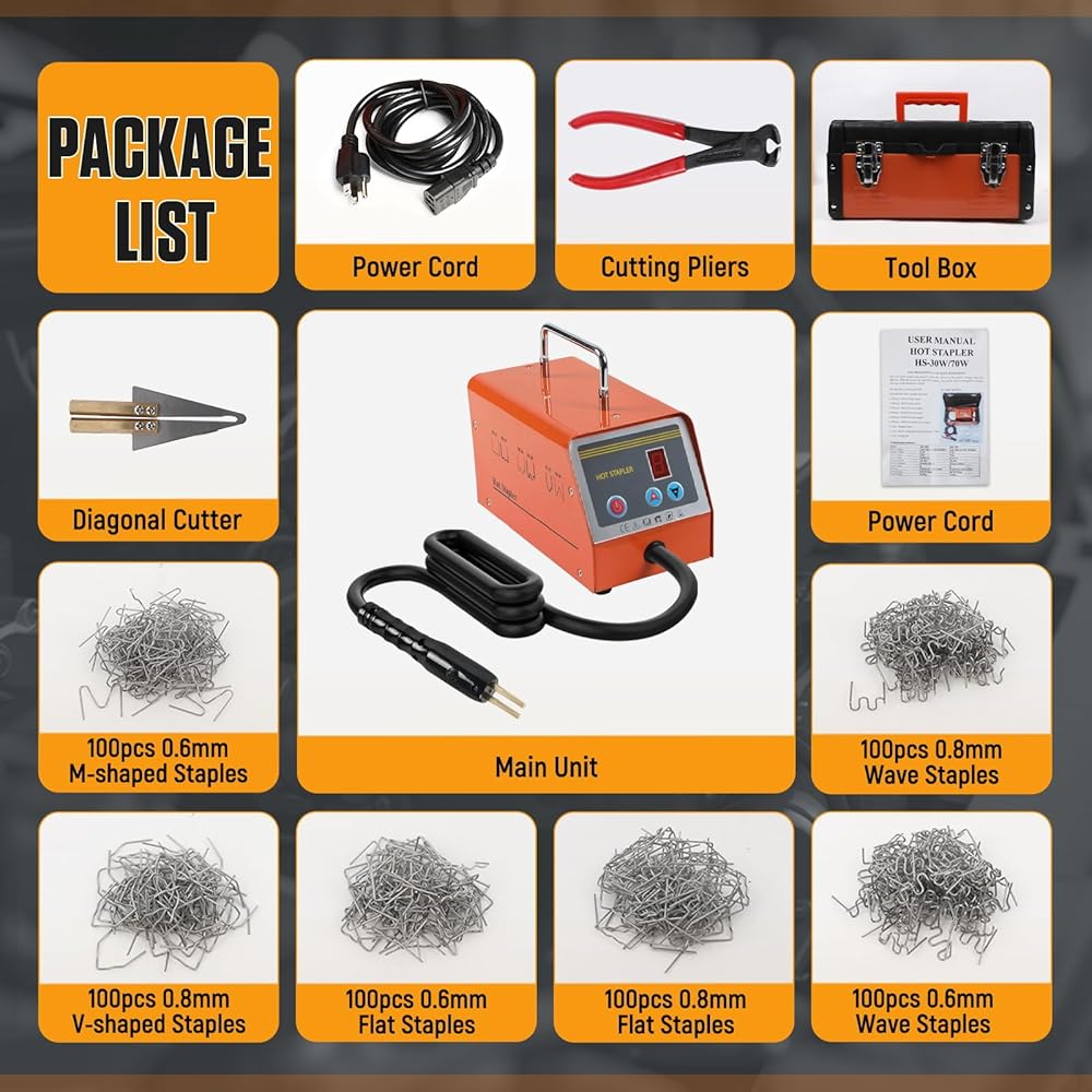 BELEY 30W Voiture Pare-chocs Kit de Réparation Soudeur en Plastique, 220V Hot Agrafeuse Machine de Soudure électrique en Plastique avec 600pcs Staples : Bricolage
