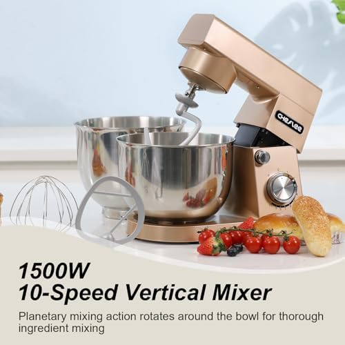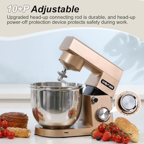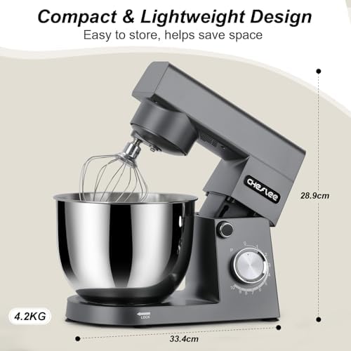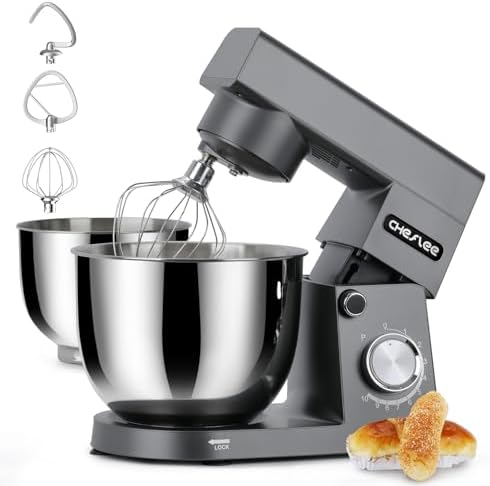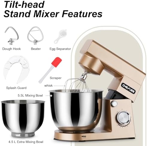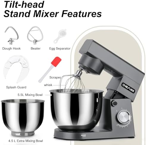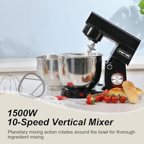 Robot Patissier CHeflee,1500 W Robot Patissier,avec Bol en Acier Inoxydable de 4,5 et 5,5 L,10 P Vitesse,avec Crochet Mélangeur,Crochet Pétrisseur,Fouet et Protection Anti Eclaboussures (Noir) : Cuisine et Maison