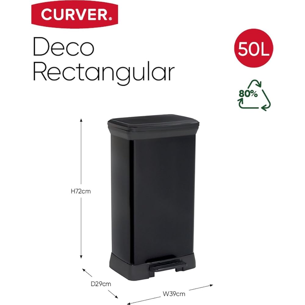Curver - Poubelle à pédale 50 L, noir, couvercle et anneau pour sac : Cuisine et Maison