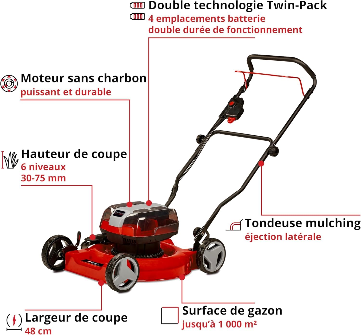 Einhell Tondeuse à gazon sans fil GE-CM 36/48 Li M-Solo Power X-Change (36 V, 48 cm largeur de coupe, jusqu'à 1000 m², fonction mulching) Livré sans B