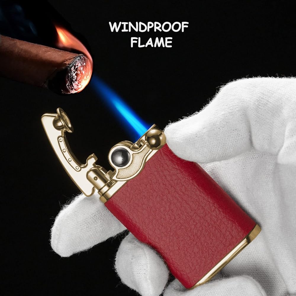 Briquet Torche Bleu Flamme Allume Cigare Coupe Vent Butane Rechargeable Réglable Forte Flamme Briquet Corps en Cuir Allumeur (sans Gaz),Brown : Cuisine et Maison