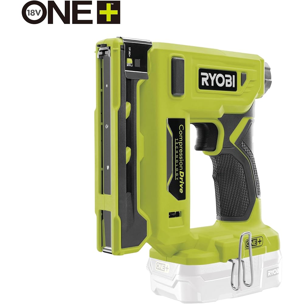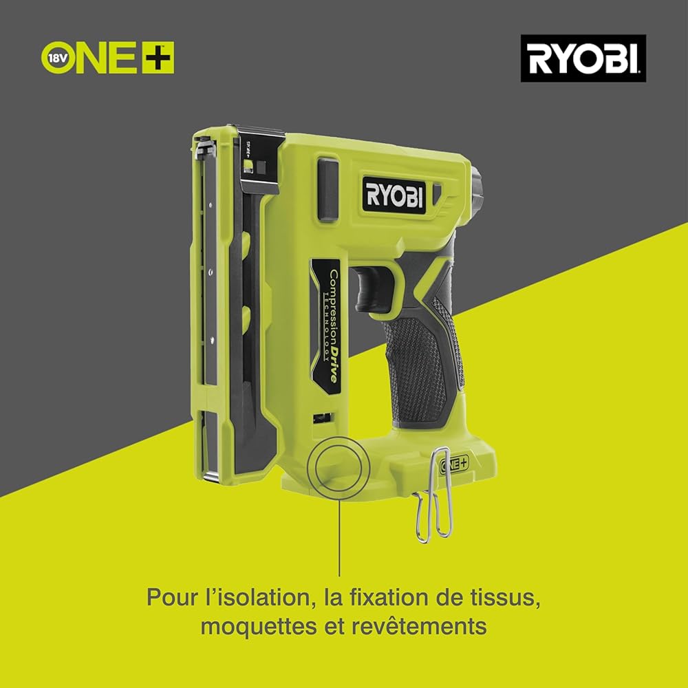 RYOBI - Agrafeuse 18V - agrafes dos 9,4 mm, longueur 6,35 mm à 14,3 mm - chargeur 90 agrafes - Livrée avec agrafes et crochet de maintien - R18ST50-0 : Bricolage