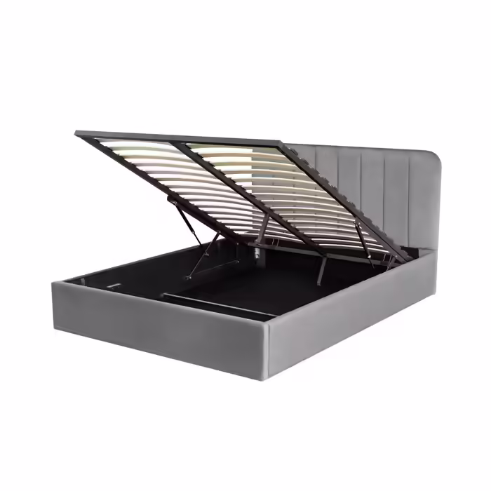 Lit coffre avec sommier relevable 140x190 cm ANNA en velours gris Lit