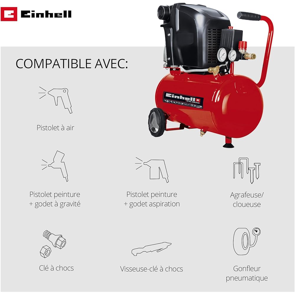 Einhell Compresseur TE-AC 230/24 (Puissance moteur 1500W, Capacité de la cuve : 24 L, Cuve garantie 10 ans contre la corrosion, Niveau d'huile visible) : Bricolage