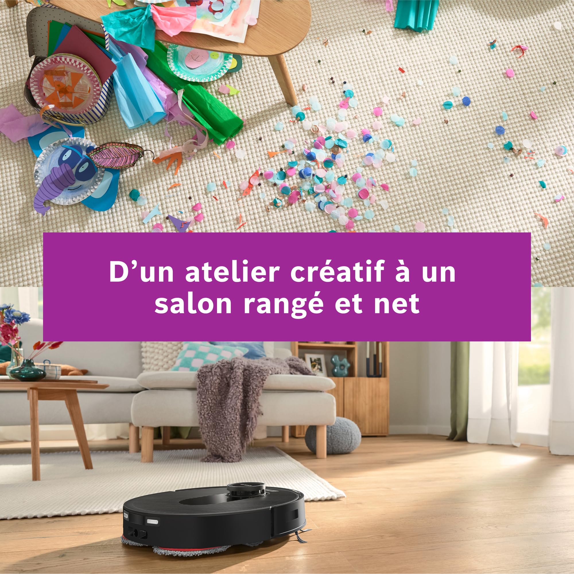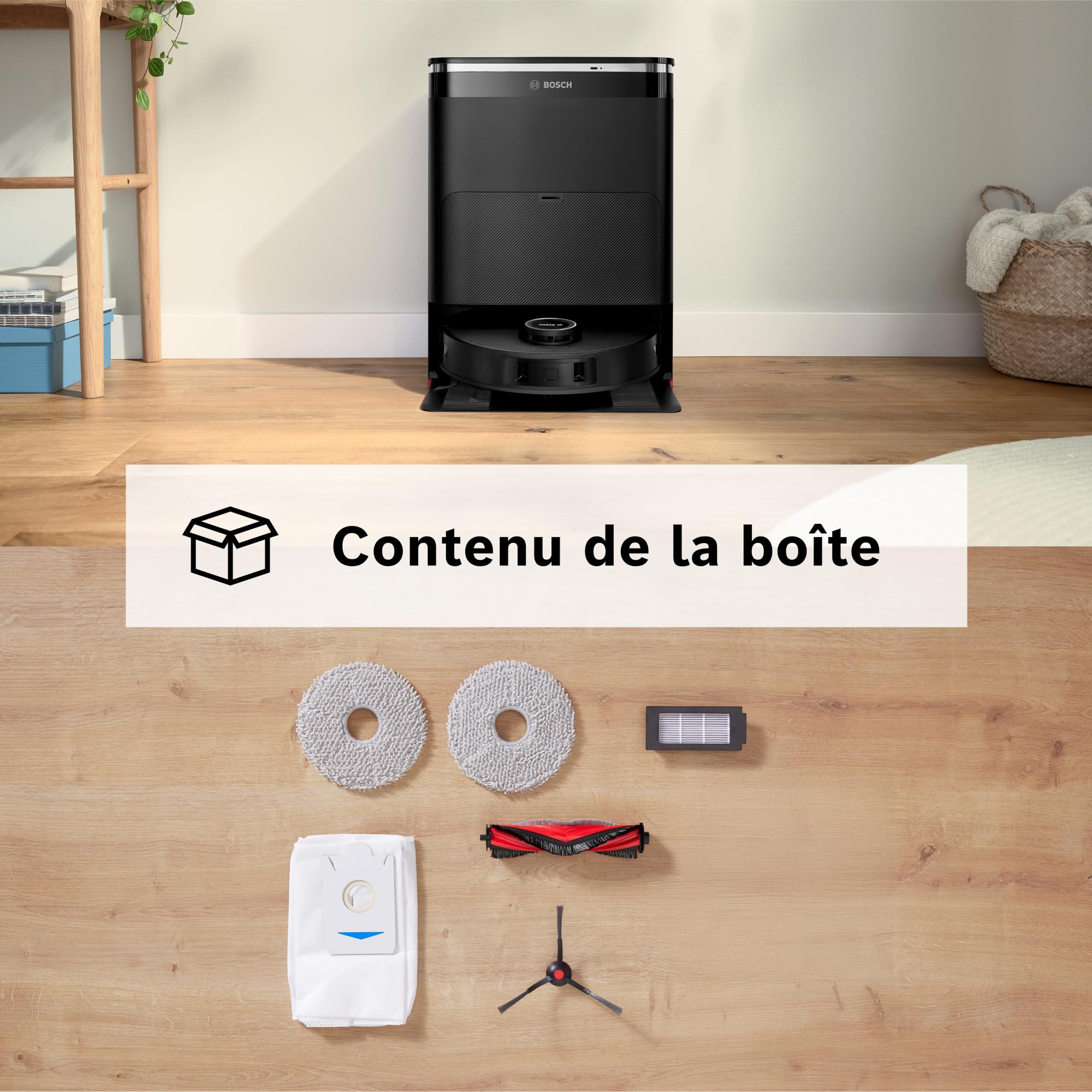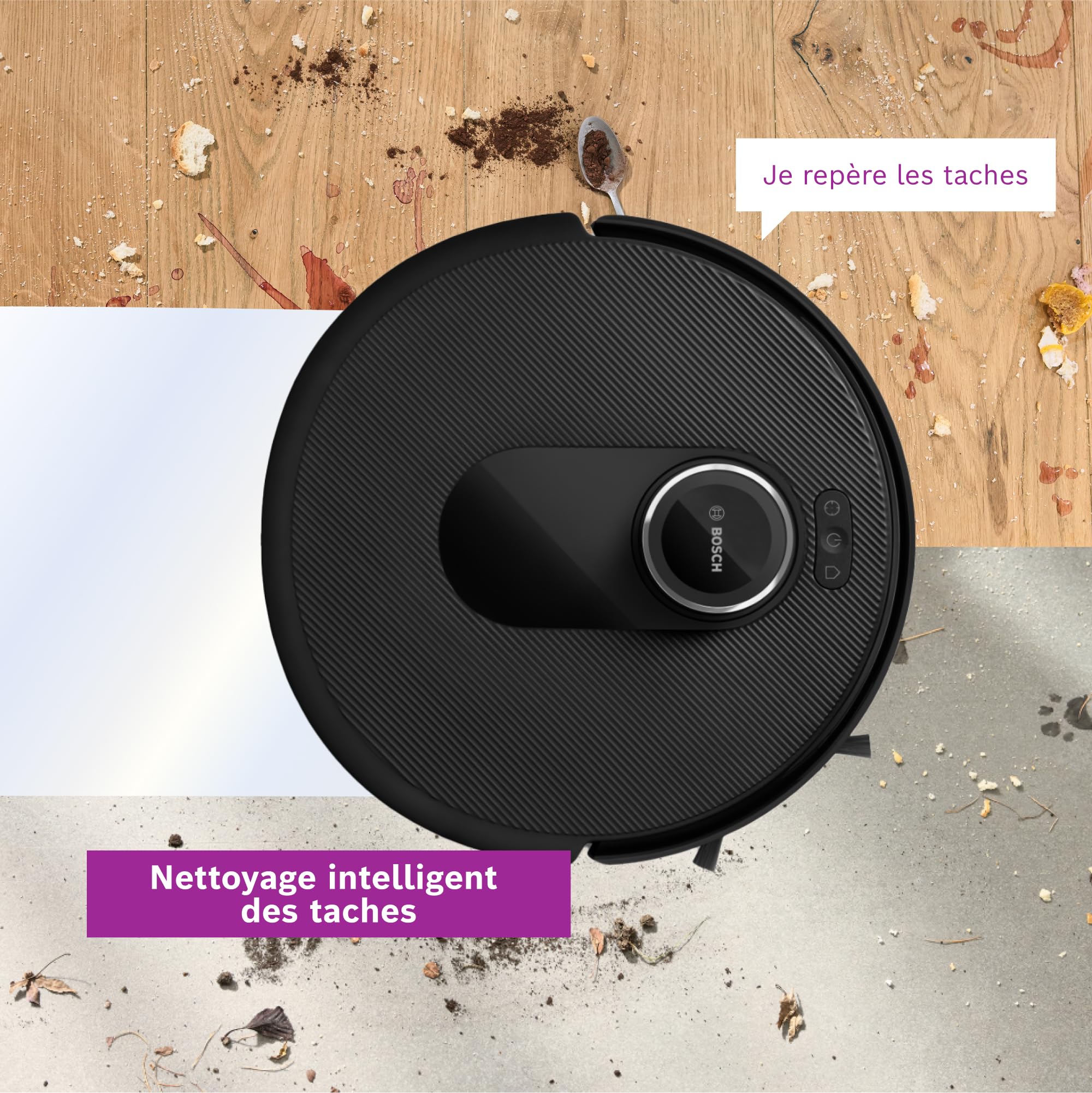 Bosch Spotless Max BCRDW3B, Robot aspirateur-Laveur avec caméra Smart Vision, serpillère rotative, 11 000 Pa, Station de Service sèche-Humide, Applica