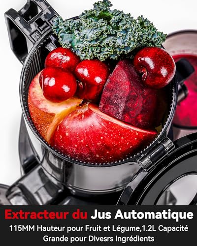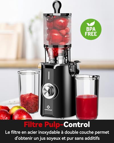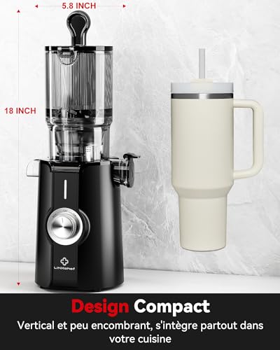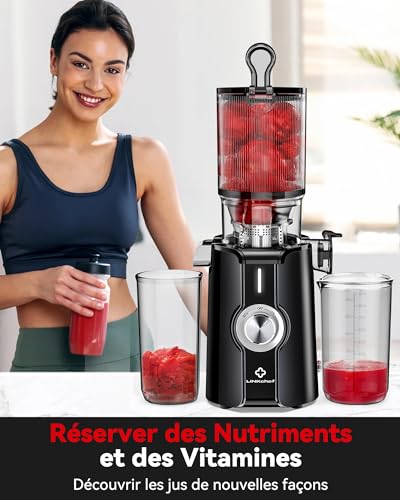 Sans Préparation Extracteur de Jus Vertical, Nettoyage Rapide Extracteur de Jus Lent, 115mm Machine a Jus de Fruit Extracteur Entiers, Facile à installer, LINKChef 1.2L, 200w, Noir : Cuisine et Maison